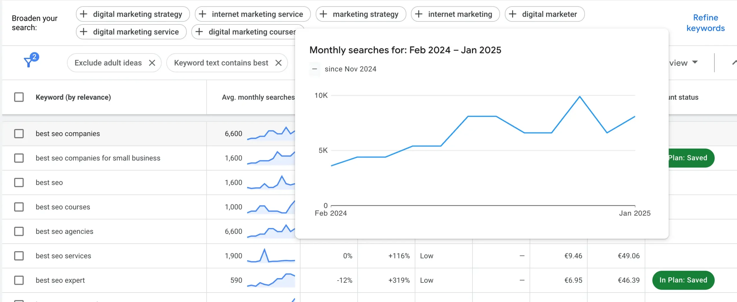 After excluding brand-related and other keywords, you can start selecting keywords for your SEO campaigns.