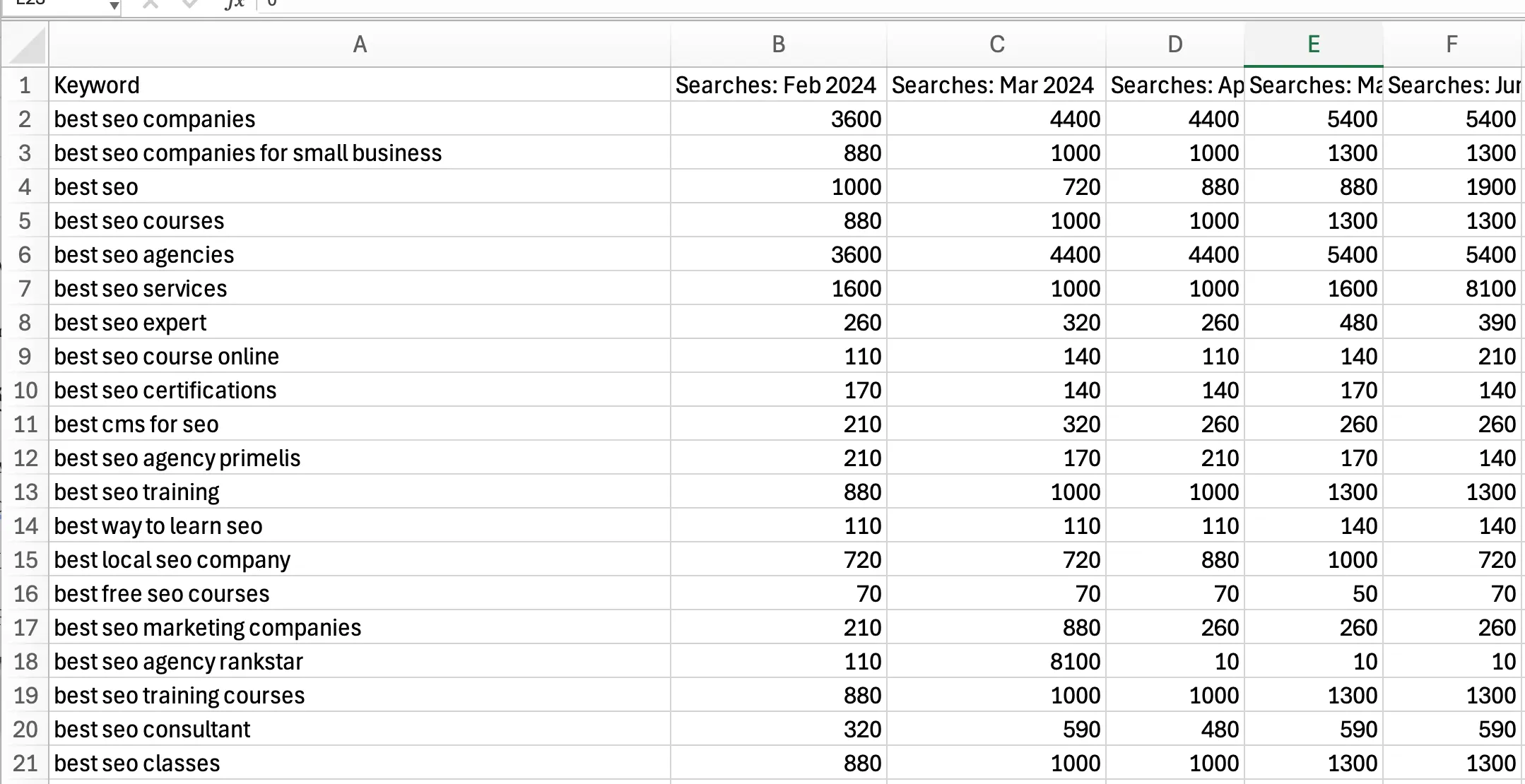 You can also click the "Download Keyword Ideas" button to export the data in Google Sheets, Excel, or CSV and see the monthly search volume in columns.