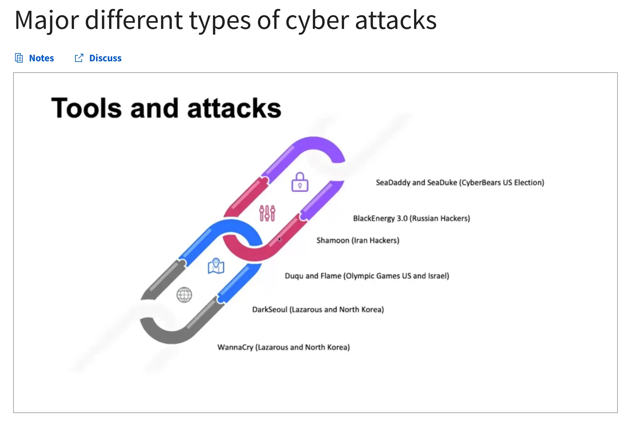 | Week 2 | A brief overview of types of actors and their motives | 6 hours |