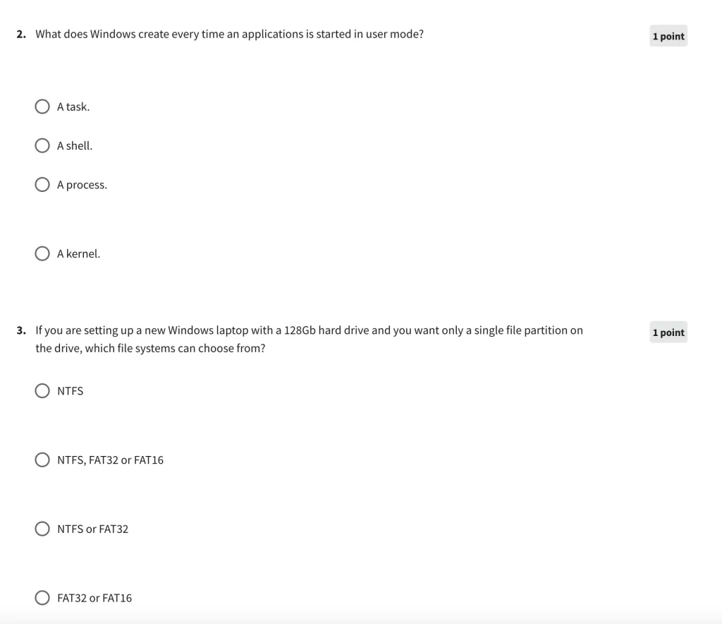 You can view below examples of what the exam questions look like: