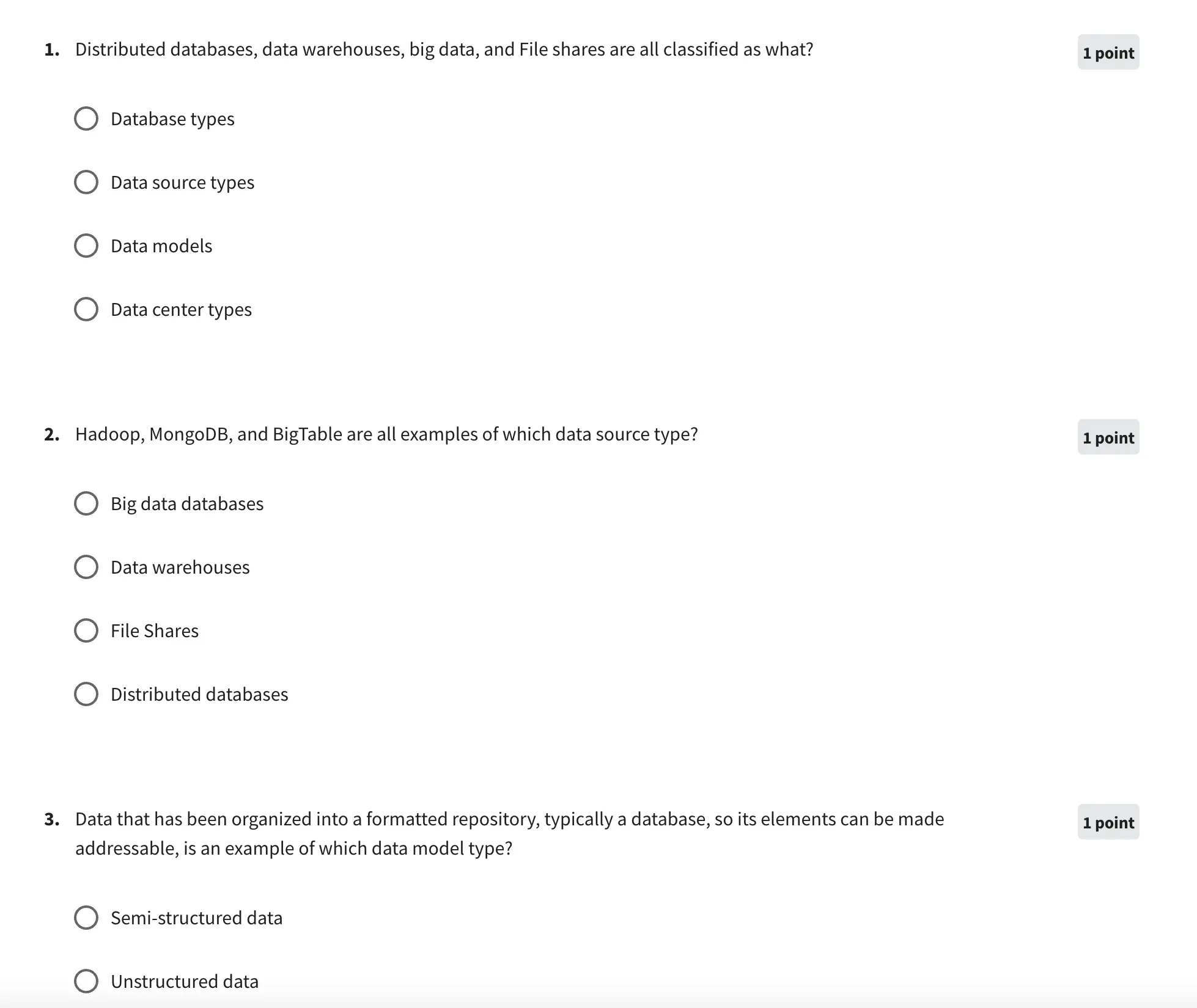 Finally, week 4 covers the concepts of virtualization and cloud computing and the governance strategies involved in working within the cloud environment. There are numerous quizzes associated with each module.