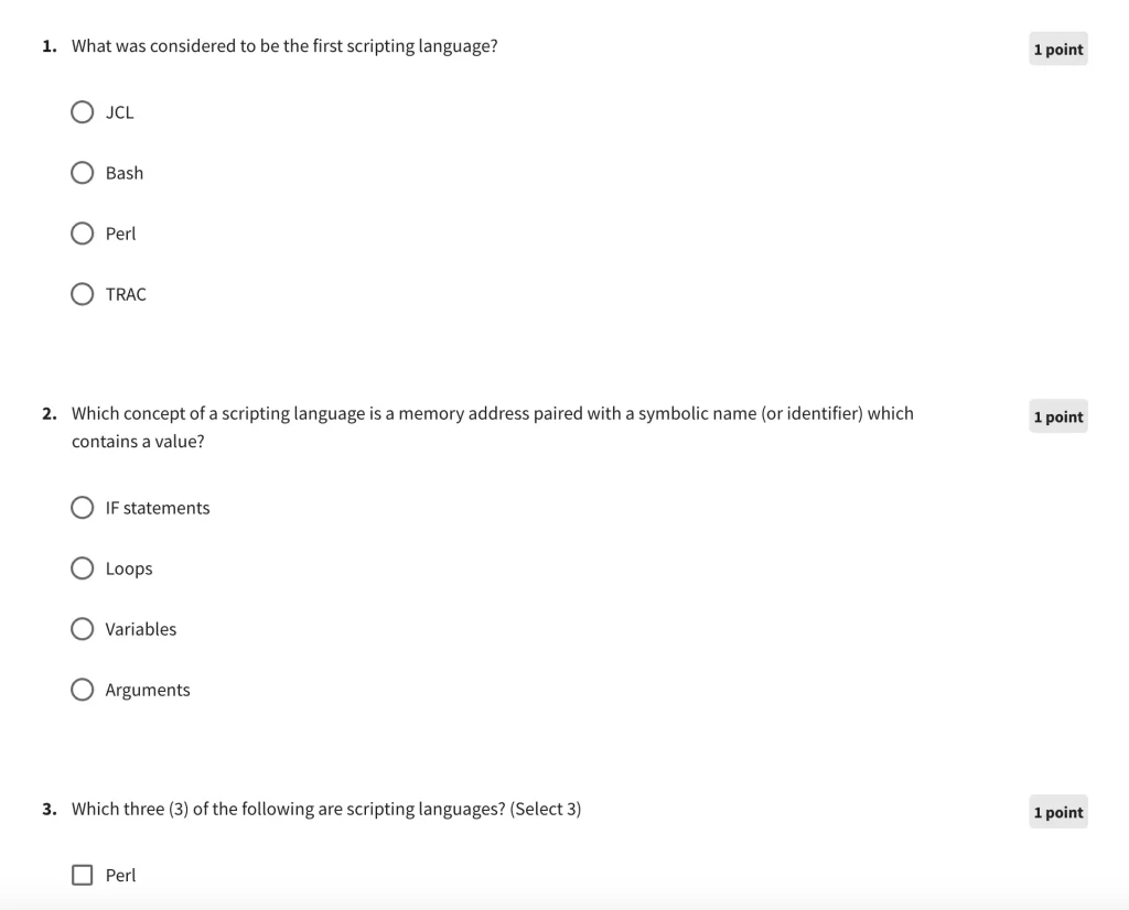 | Week 4 | Introduction to Scripting | 3 hours |