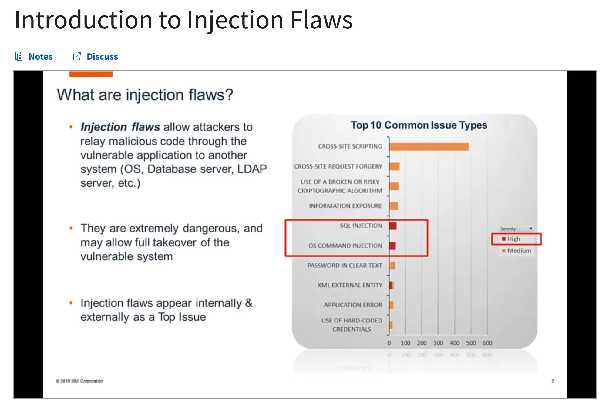 Finally, week 4 takes a deep dive into injection vulnerability, with overviews from an IBM subject matter expert.