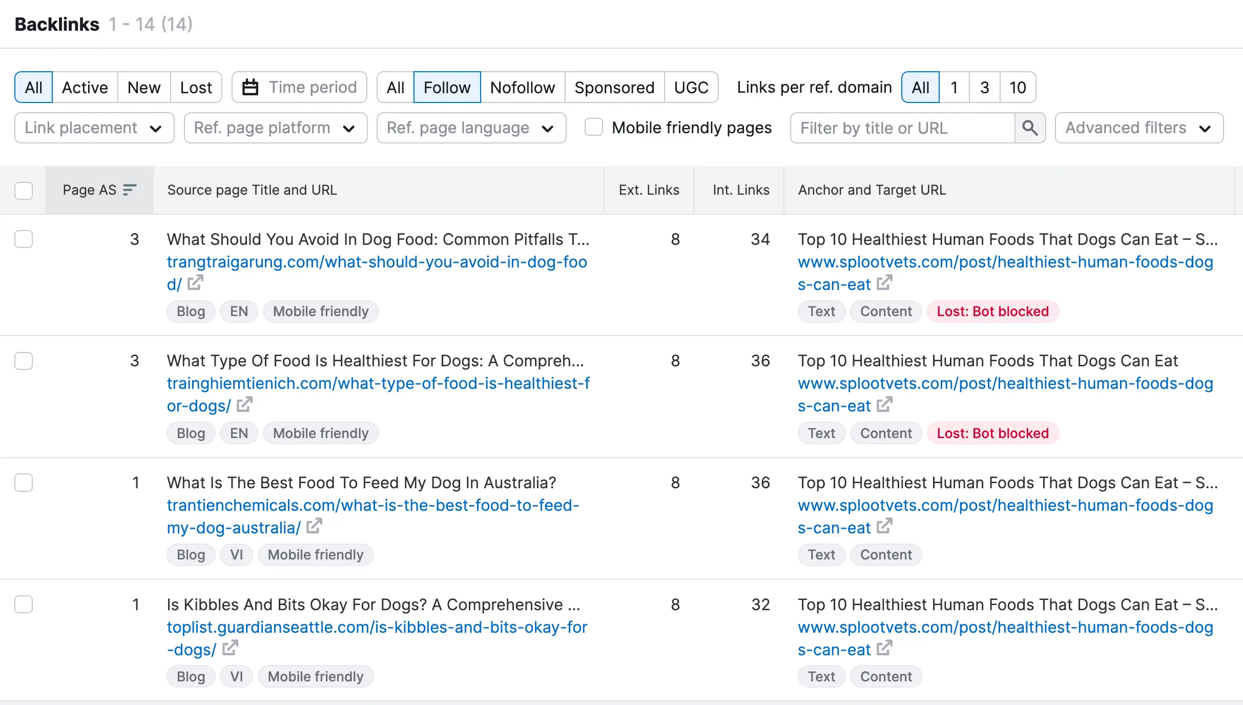 - Look for patterns in the types of websites linking to them and the type of content they link to.
