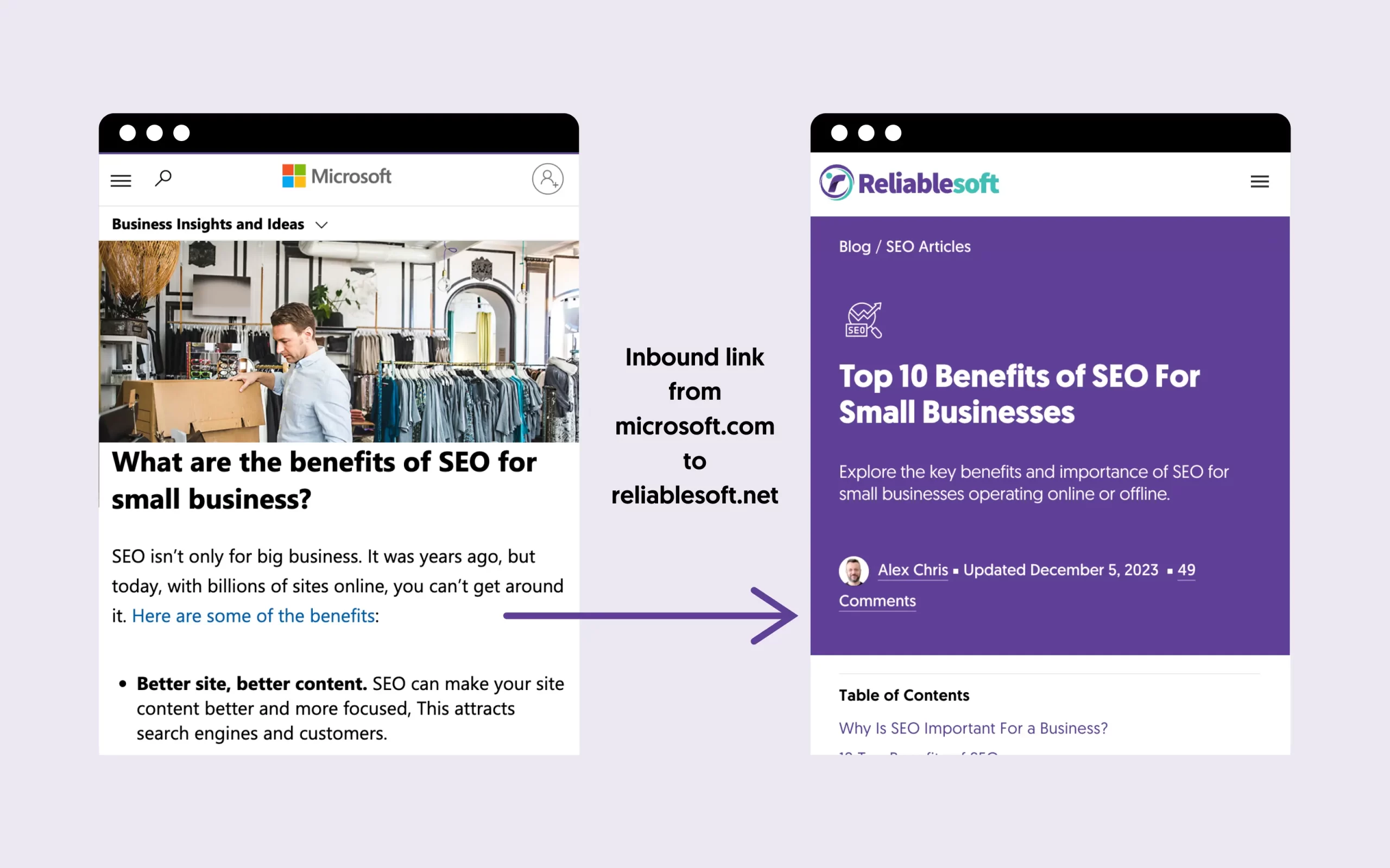 For example, this link on Microsoft.com points to a page on reliablesoft.net with the anchor text "Here are some of the benefits:".