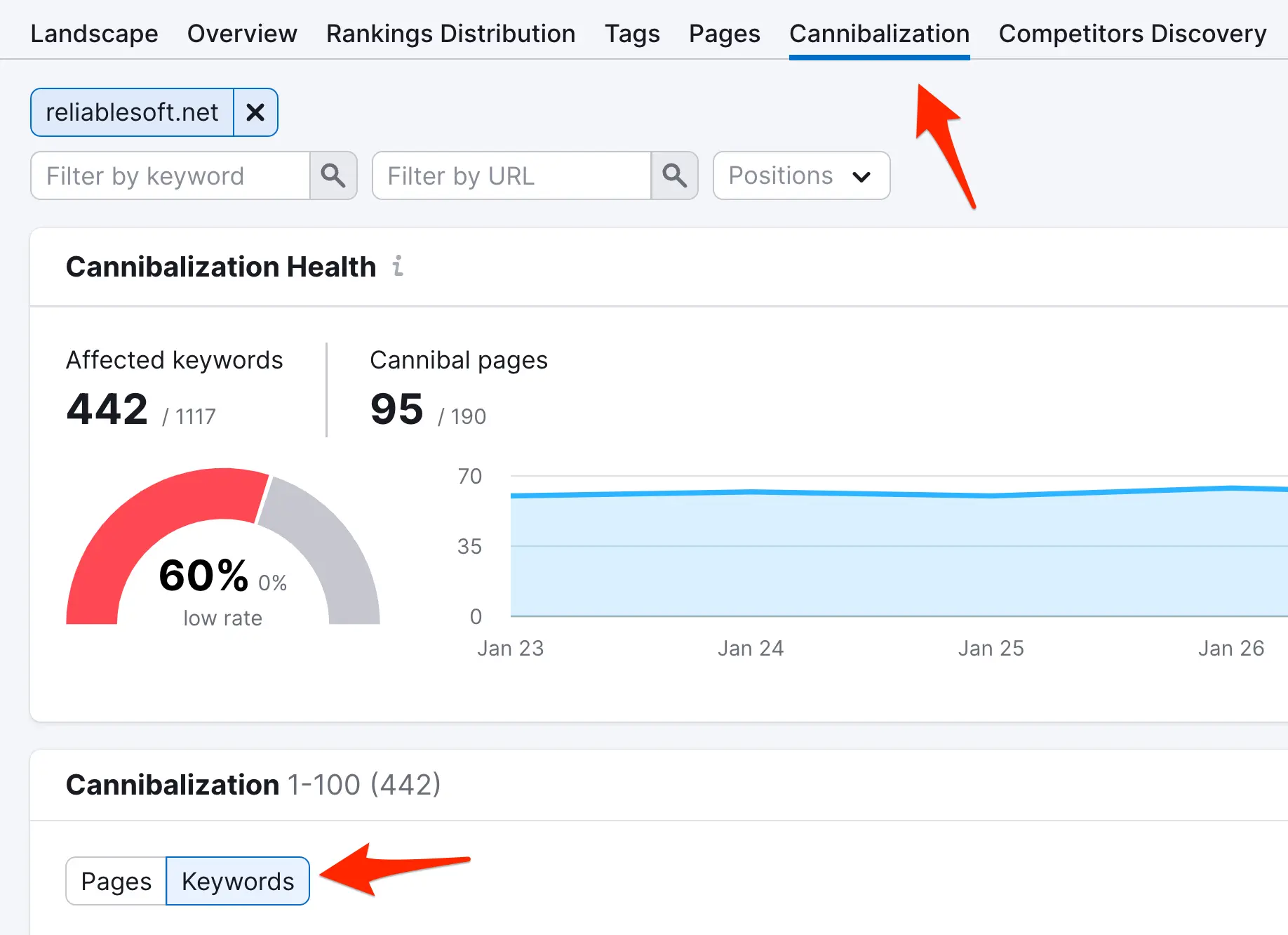 It's not always easy to find cannibalized keywords, especially if you have a big website with lots of content published over many years. Even dedicated tools cannot easily identify them.