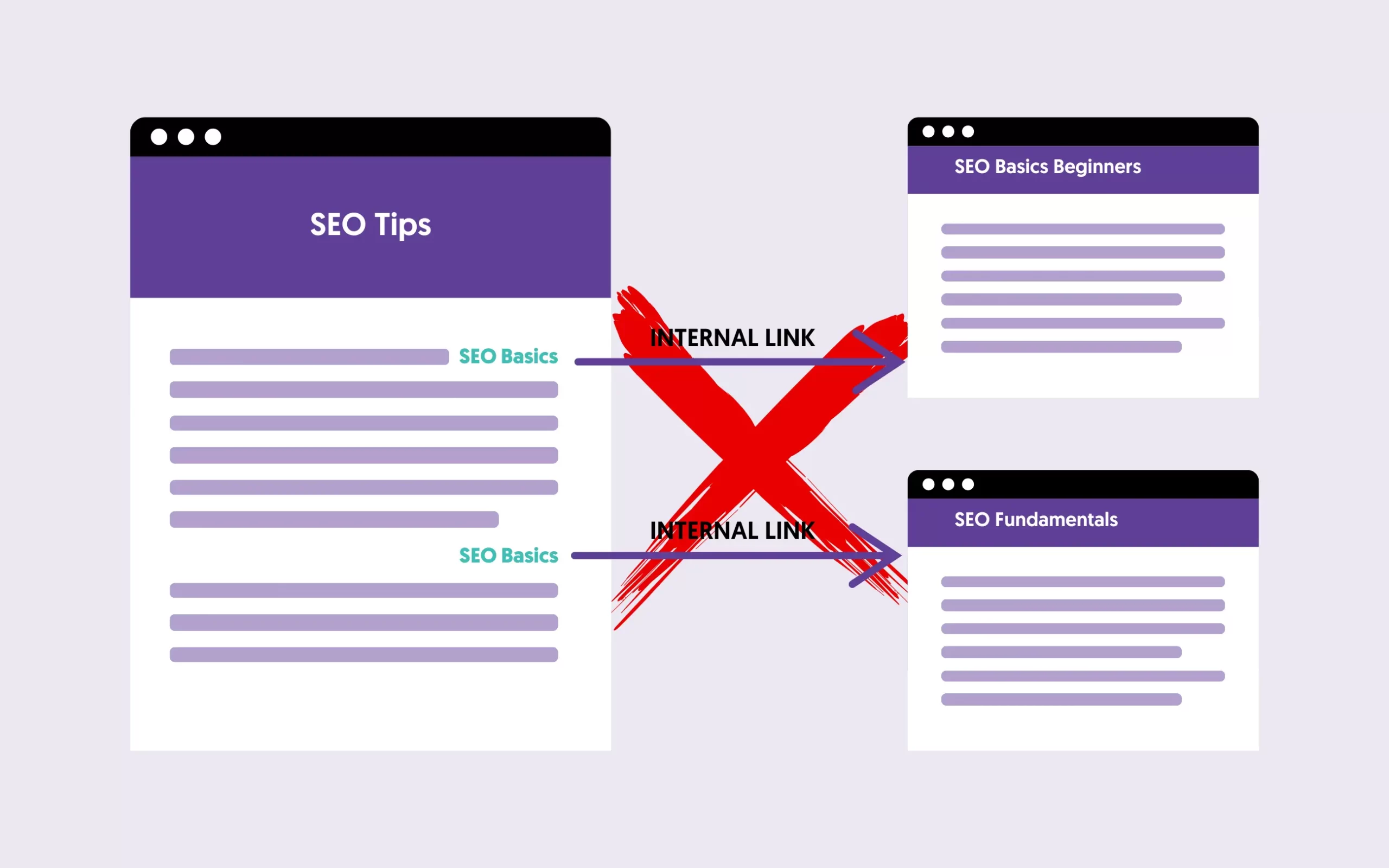 For example, if you have repeatedly used the term "SEO Basics" to link to more than one page (as shown in the example above), you may confuse Google regarding which page should appear in the search results for that term.