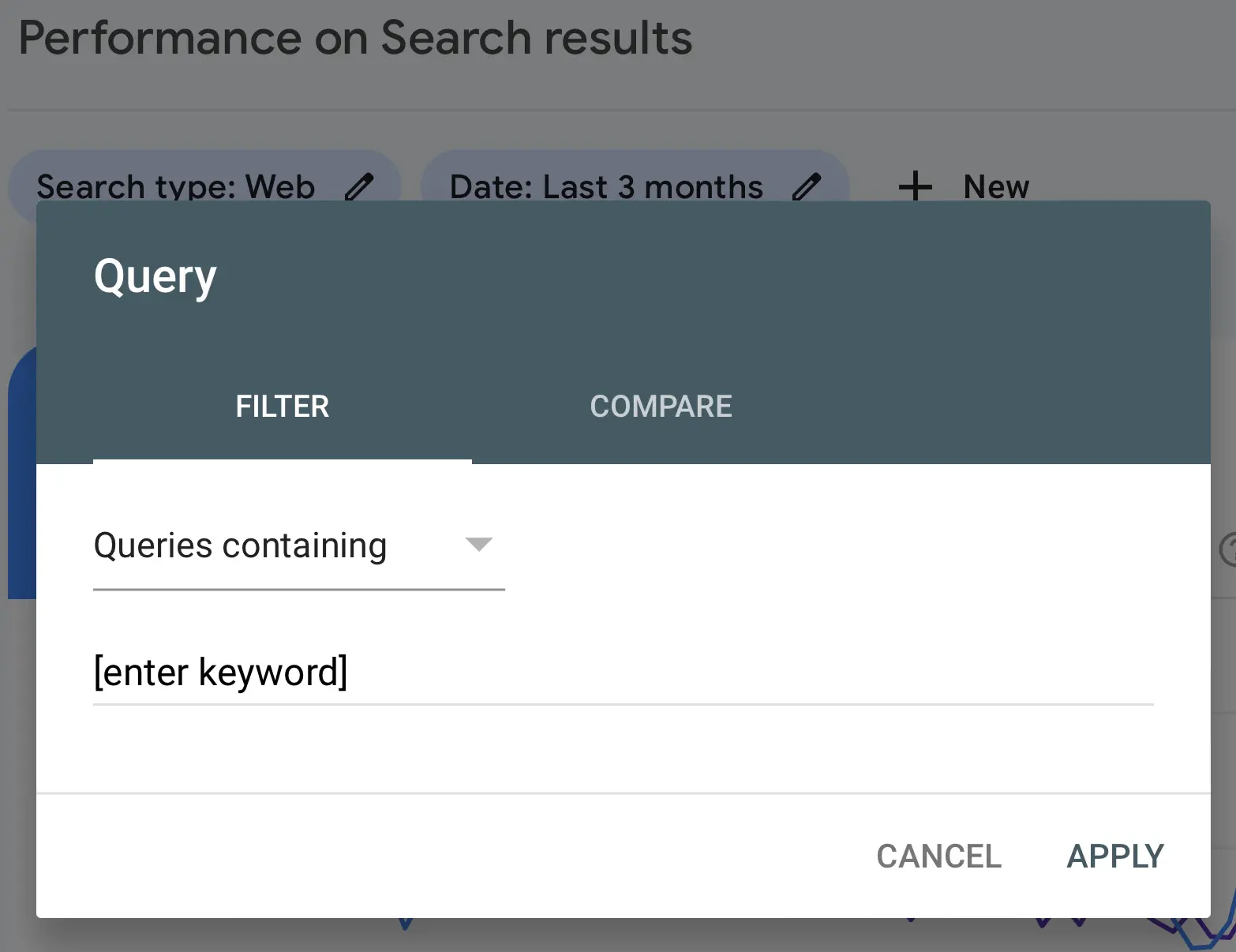 - Click the +NEW button and select Query. Enter the specific keyword you want to check.