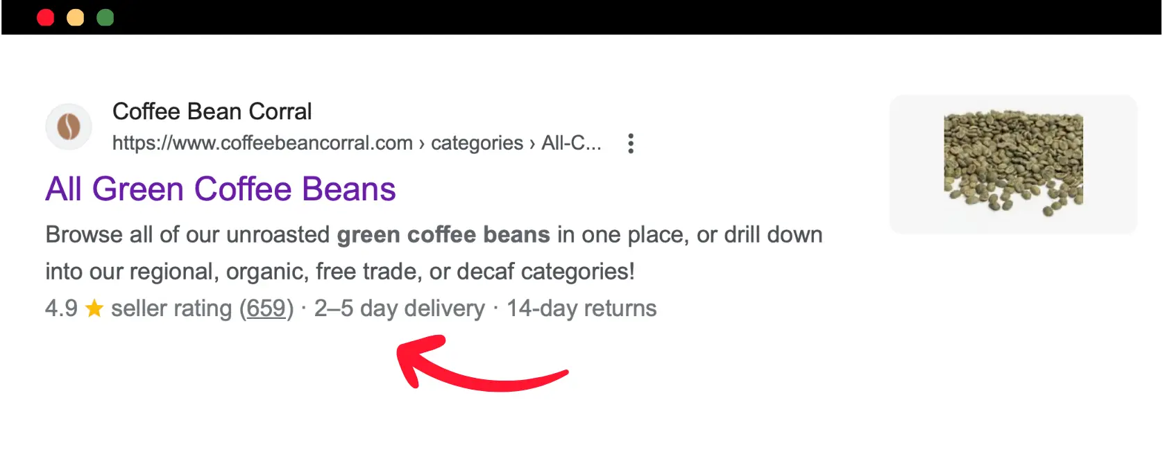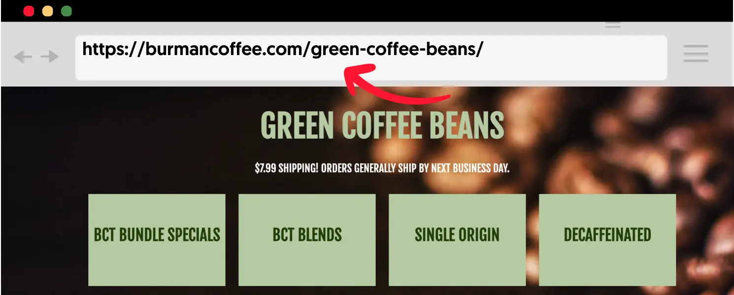 In the title tag, you must include your main keywords (for example, 'Buy Green Coffee Beans Online.')