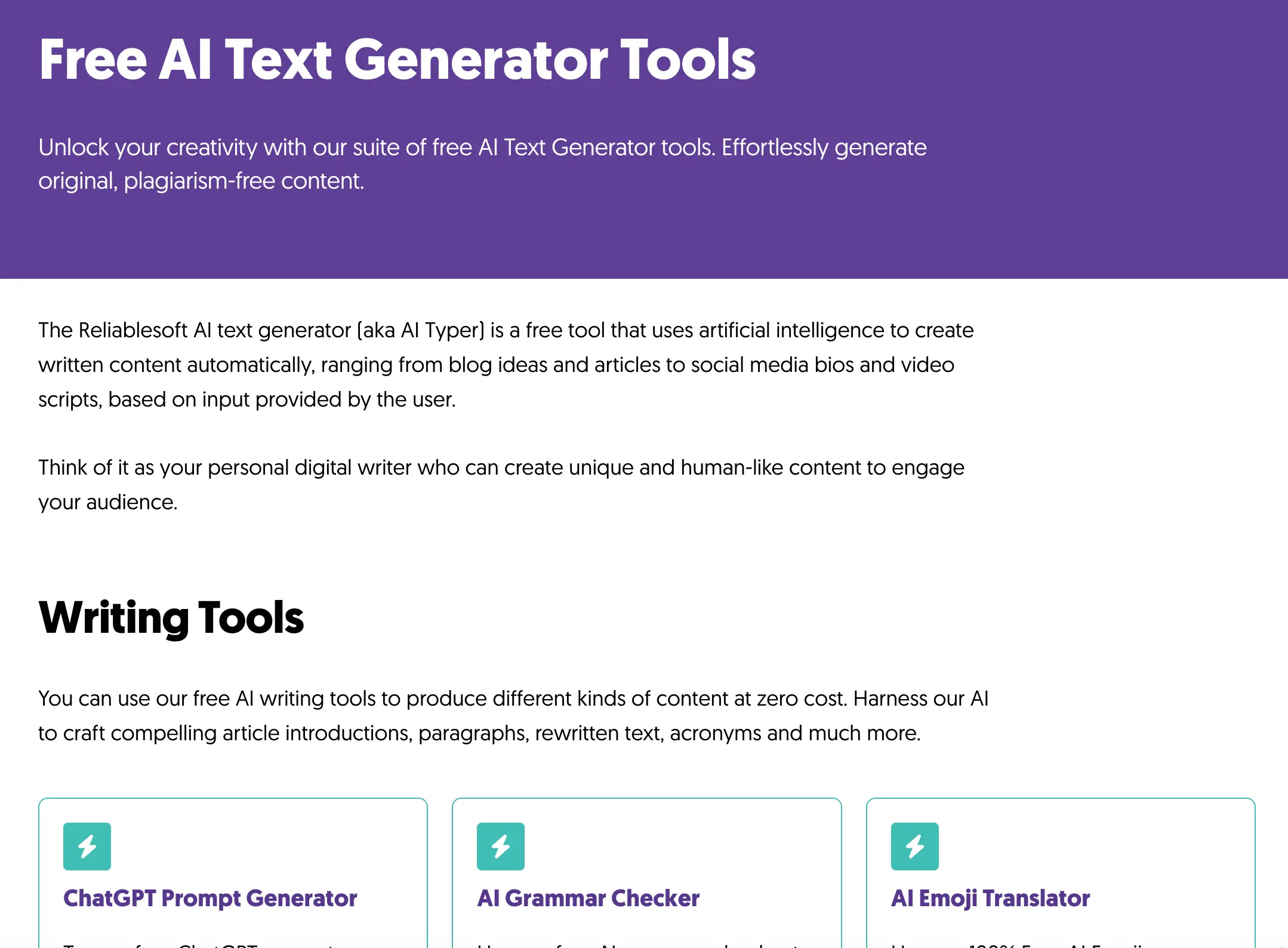 Our free AI text generator tools is a good example of how you can use free tools to get leads and repeating visits to your website.