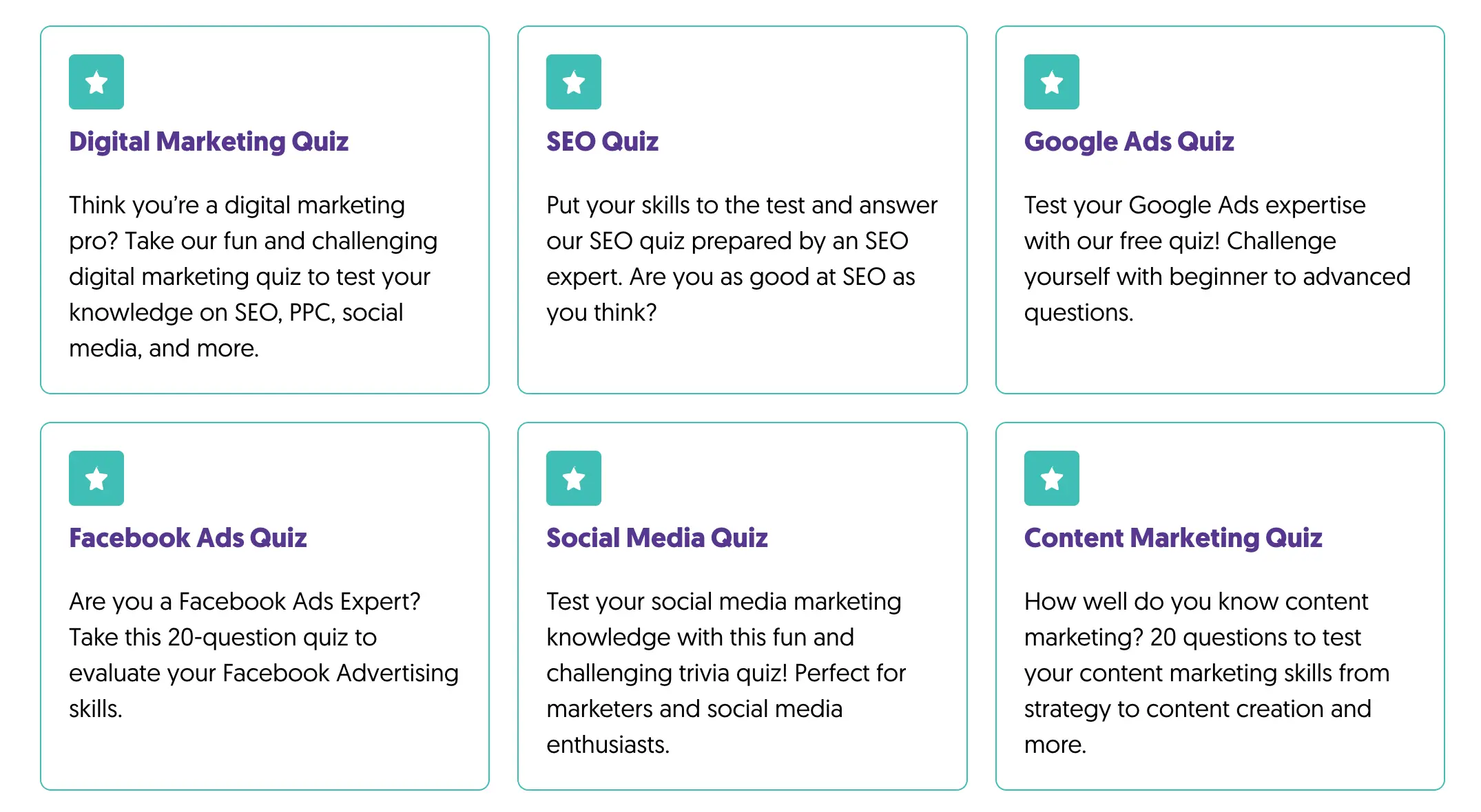 Here is an example of marketing quizzes we offer for free to help our visitors test their knowledge.