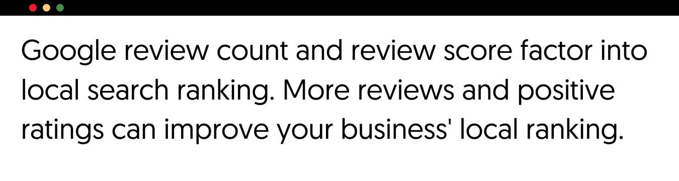 As stated by Google, one factor determining your business's local ranking is the number of reviews and ratings on your Google Business Profile.