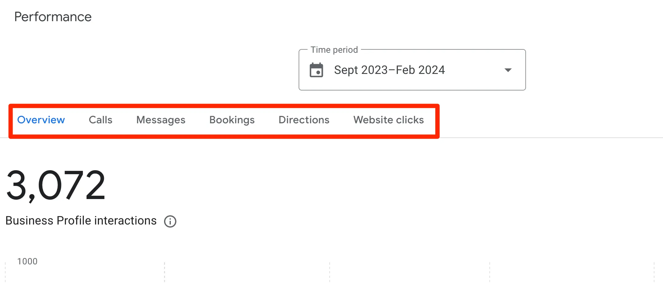 Google provides valuable insights into how customers search for your business, where those customers are coming from, and other engagement metrics like calls, bookings, directions, and website clicks.
