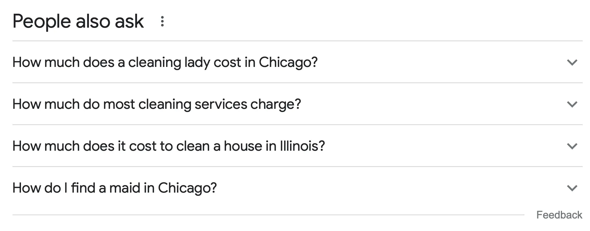 Finally, scroll down to find the 'Related Searches' section. You can spot some keywords not identified by keyword research tools like 'deep cleaning services' and 'move out cleaning services'.