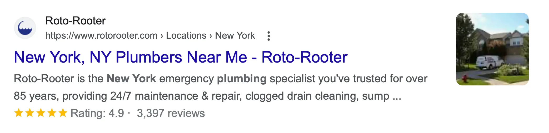 Here is an example of a rich snippet for a local business. Notice that Google shows an image, ratings, reviews, and a well-formatted breadcrumb list.