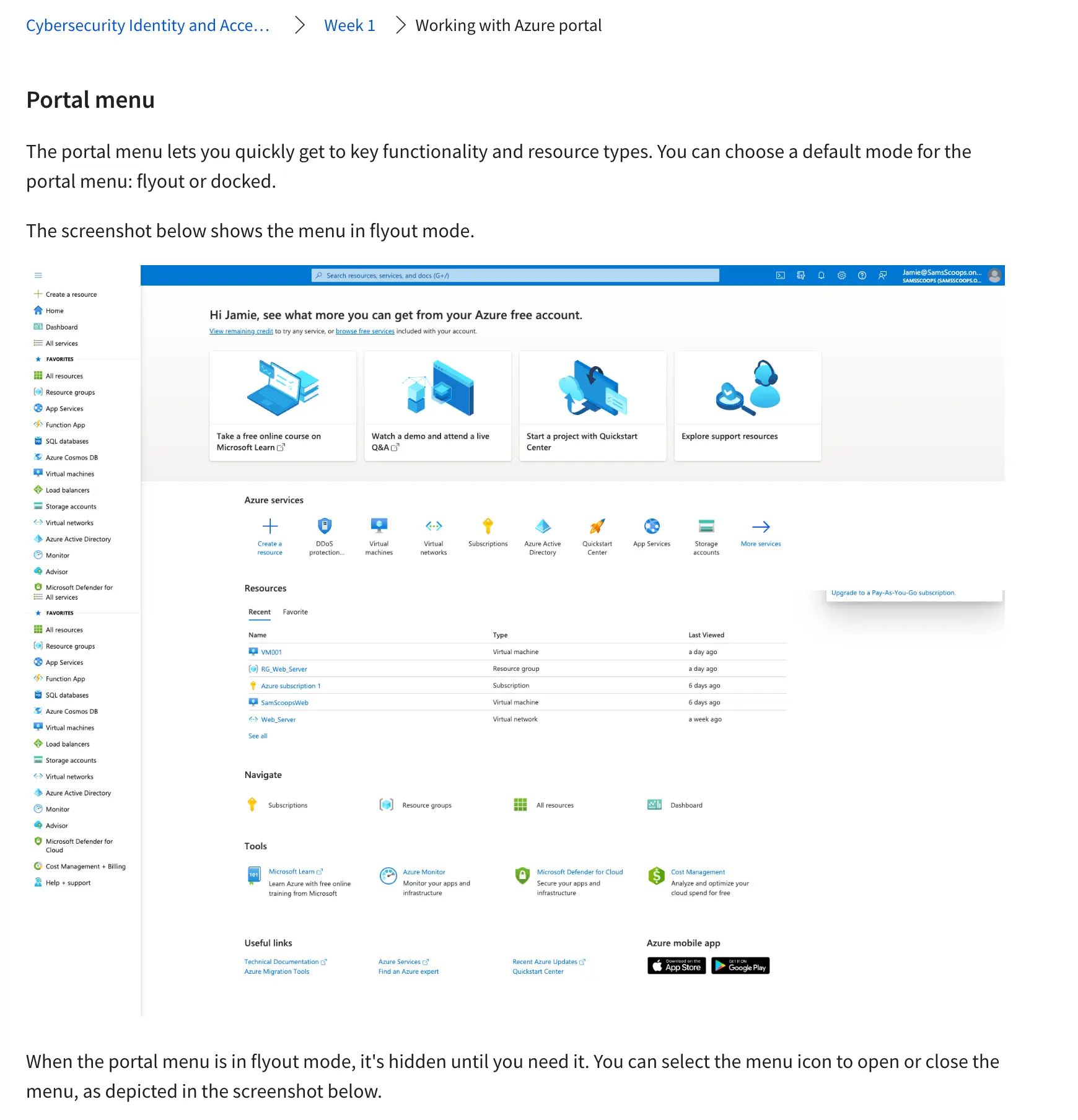In week 3, students spend around 5 hours exploring the features of Azure Active Directory for secure authentication and identity governance. You’ll learn about role-based access, managing identities, and setting up conditional policies.