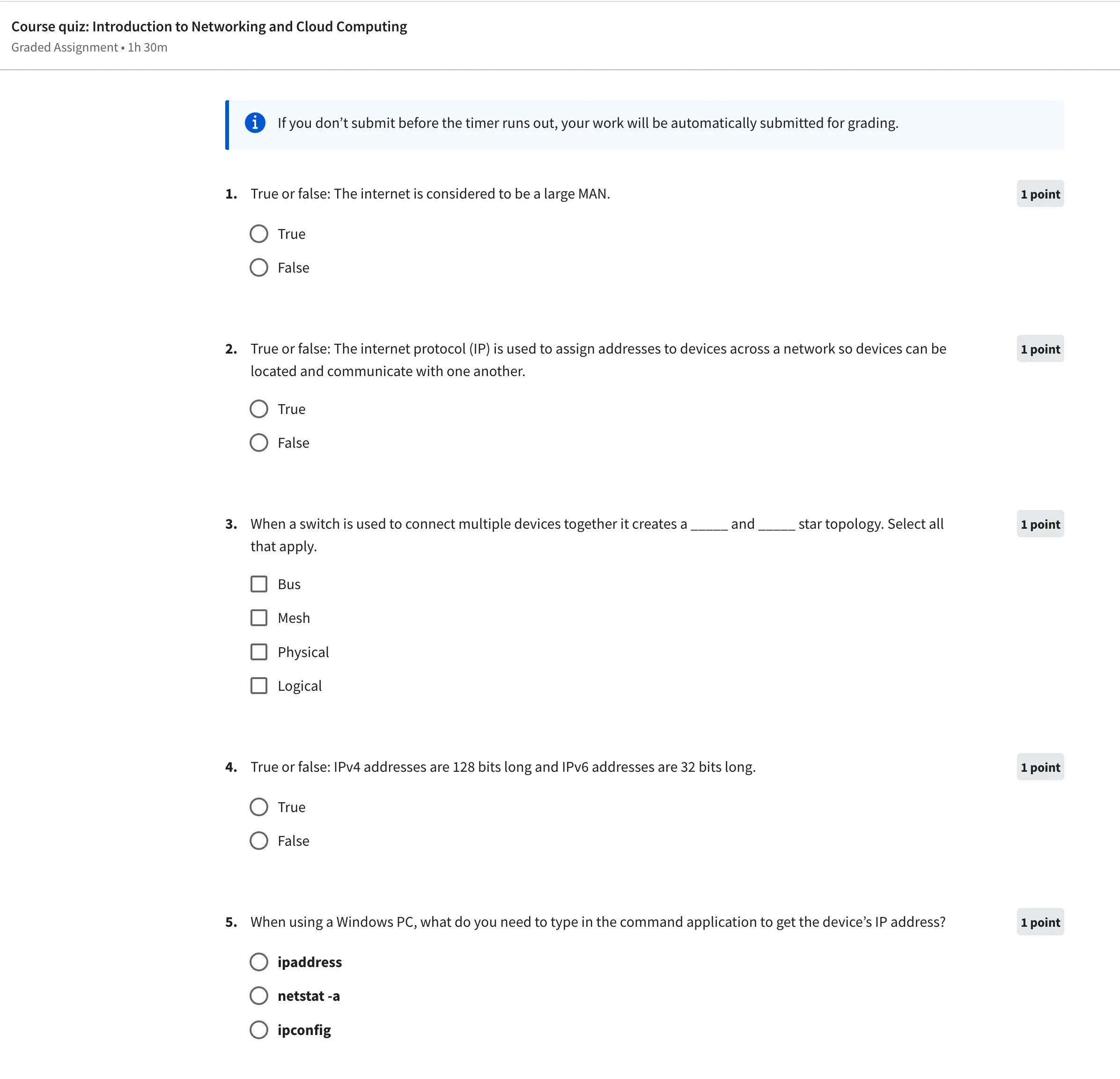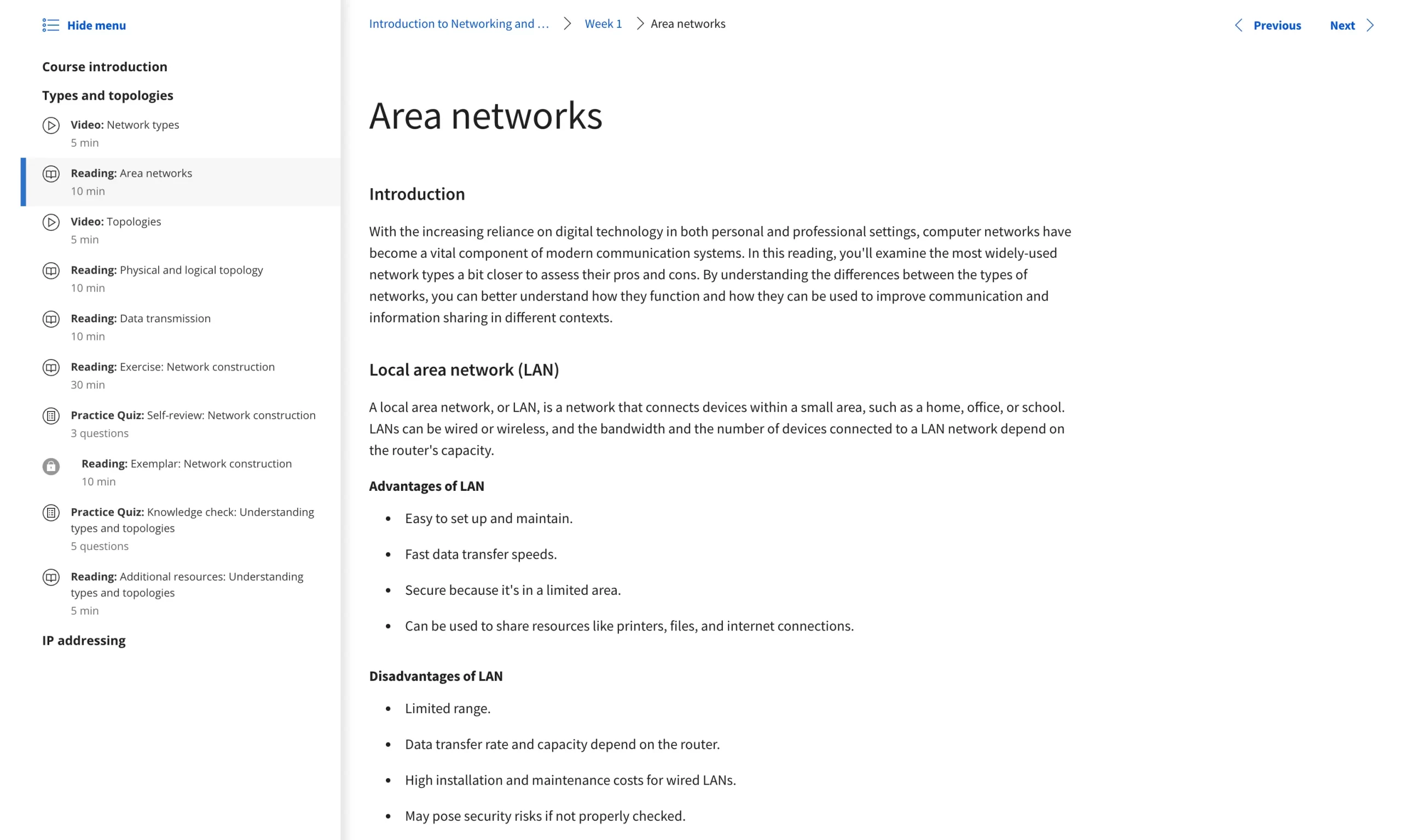 The course takes approximately 25 hours to complete, starting with week 1, where you’ll explore computer networking systems, such as hardware and operating systems.