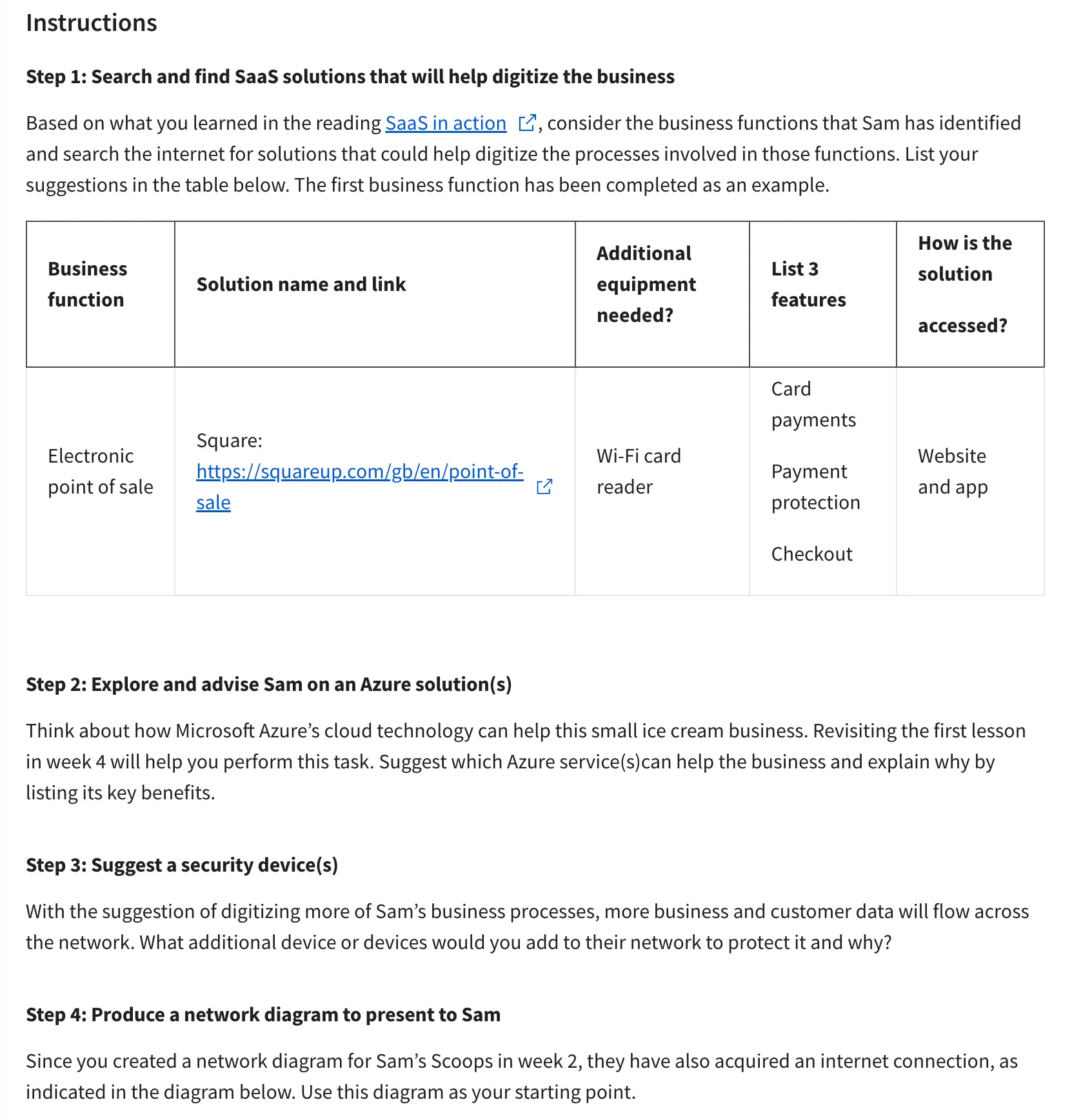 Week 4 expands on your knowledge of networks, with an overview of the Azure landscape, with business enterprise use cases. You’ll learn about AI and machine learning in the virtual world, software as a service, and virtual networks, with simulations.