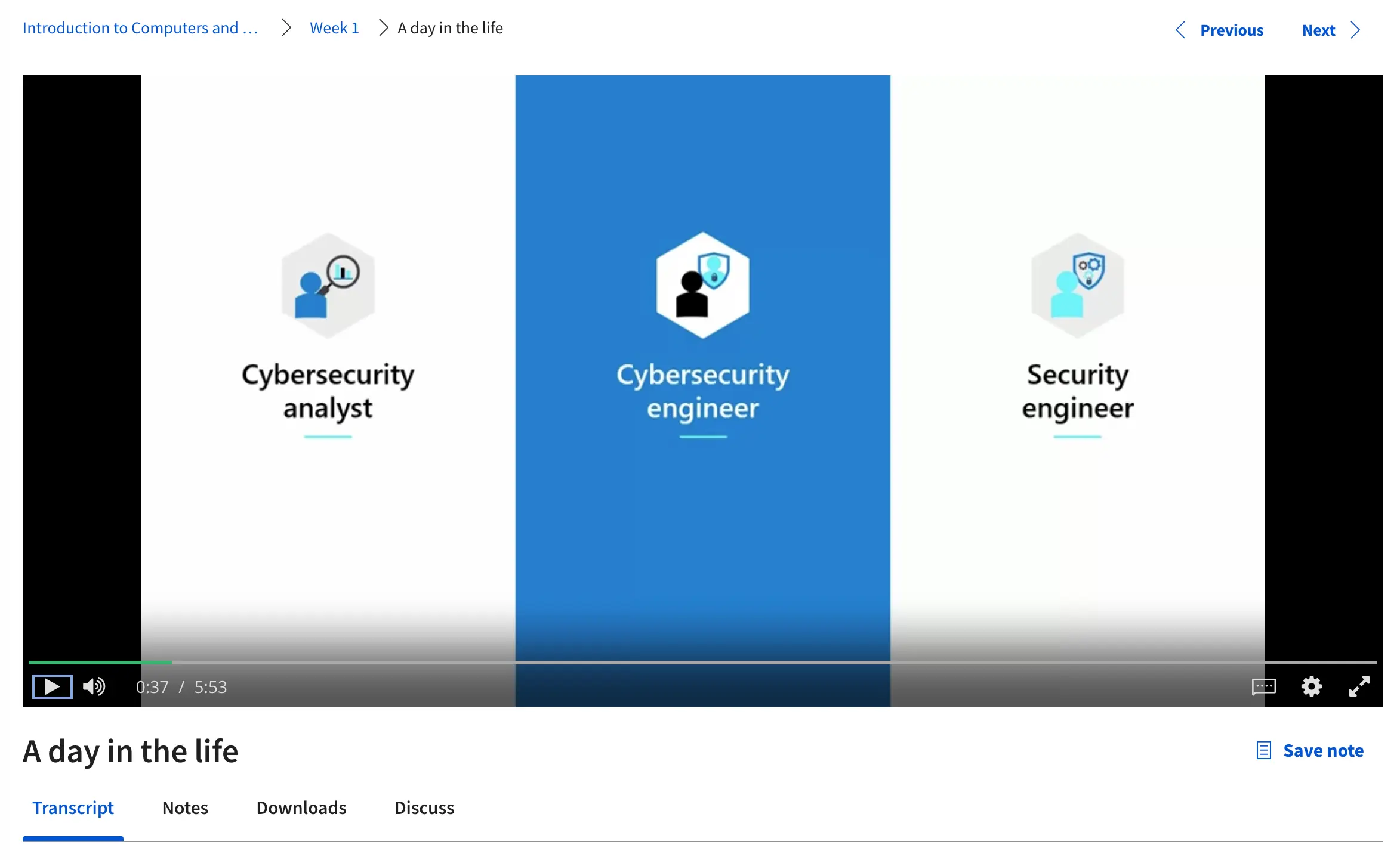 During the first week, you’ll learn about computers and operating systems and where cybersecurity threats can originate in the computing landscape.
