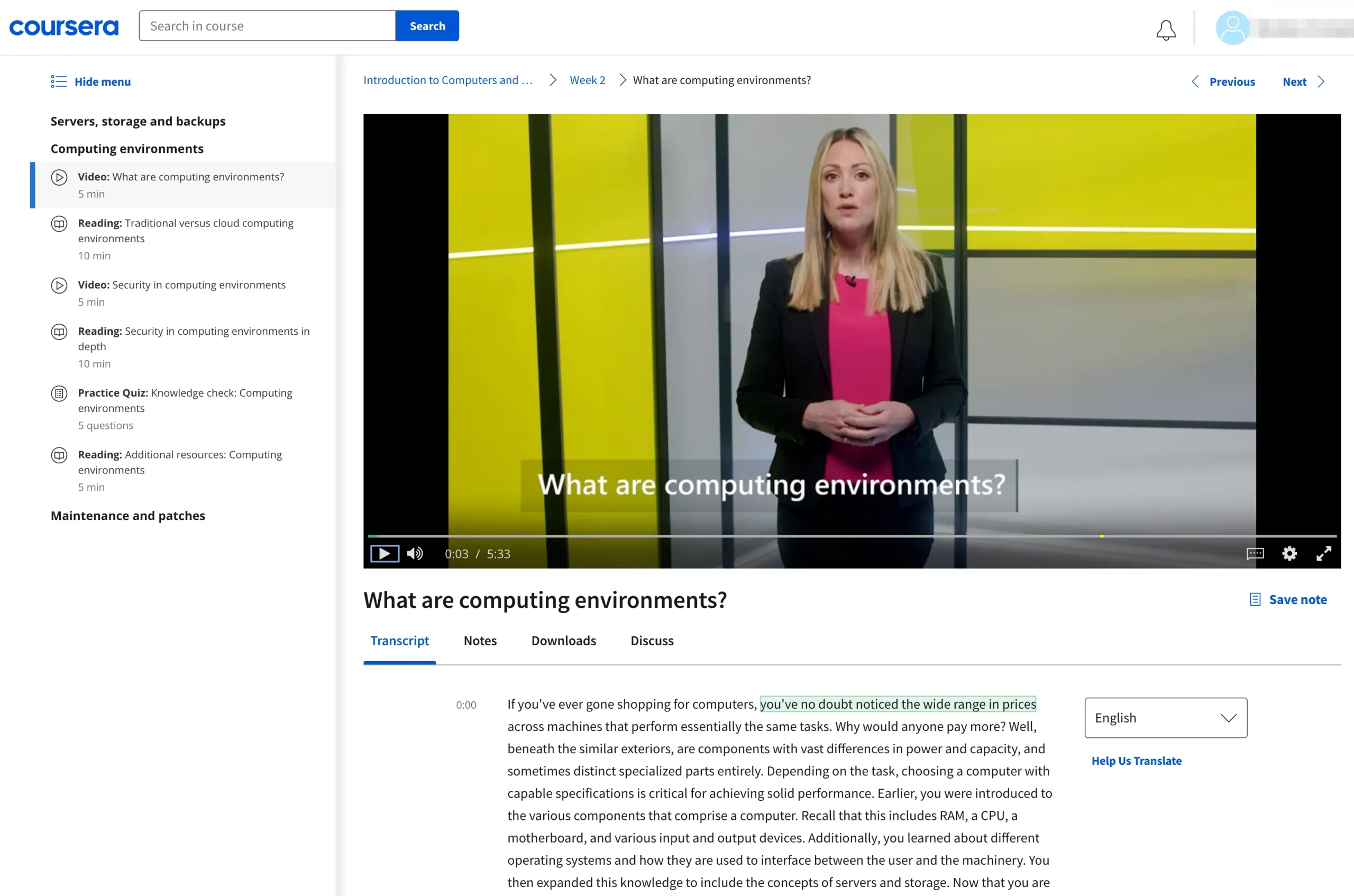 Finally, in week 4, you’ll get a course recap, looking at how the computing landscape works together in the enterprise.