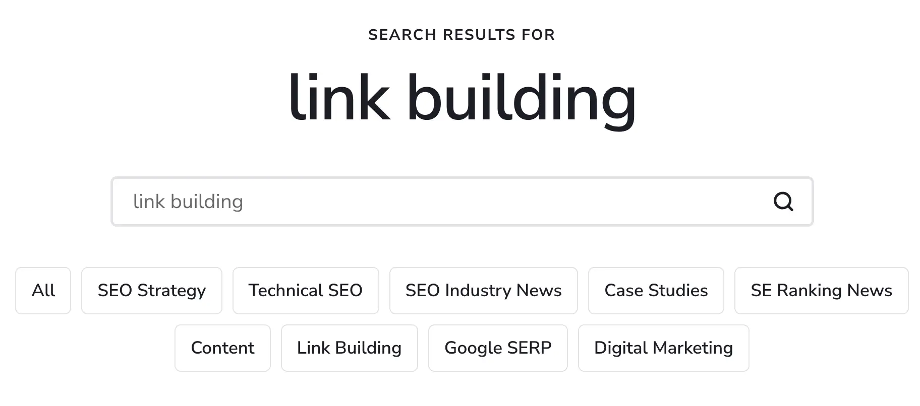 See how much content your competitors have on specific topics. For example, by searching for site:reliablesoft.net "link building", you can see how many articles on link building are published on your website.