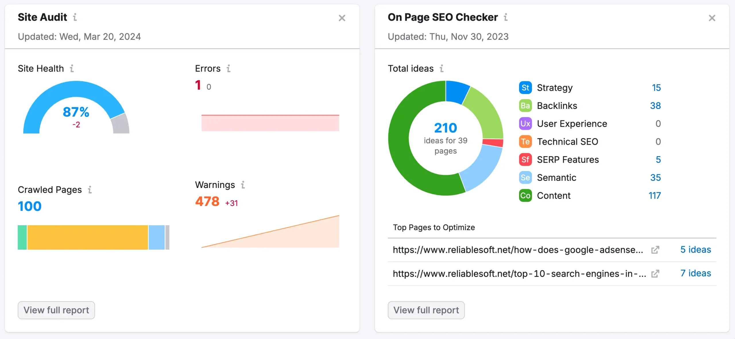 With Semrush Pro, you’re limited to 5 projects, but upgrading to Guru increases that number to 15.