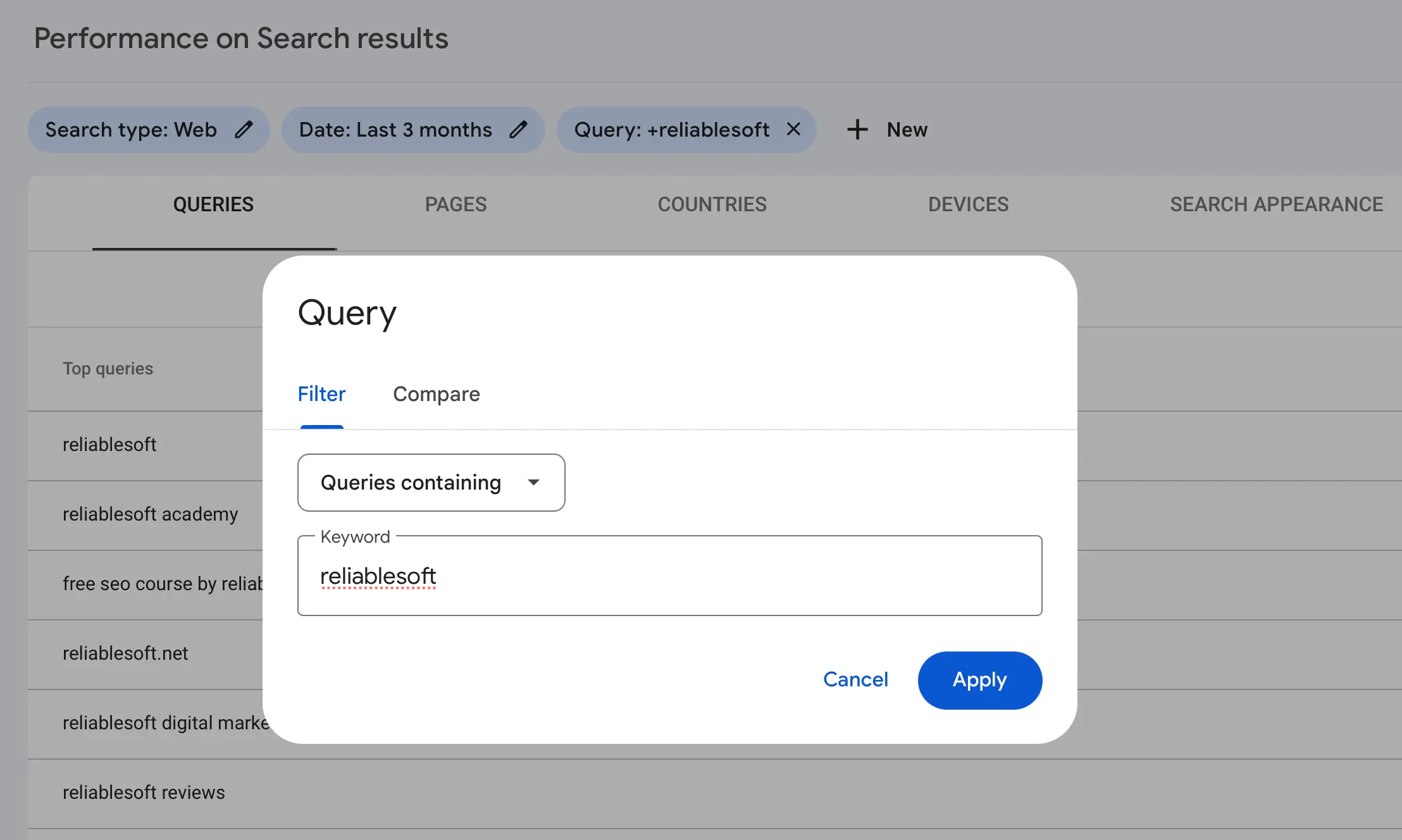 - In the query filter, enter your brand name.