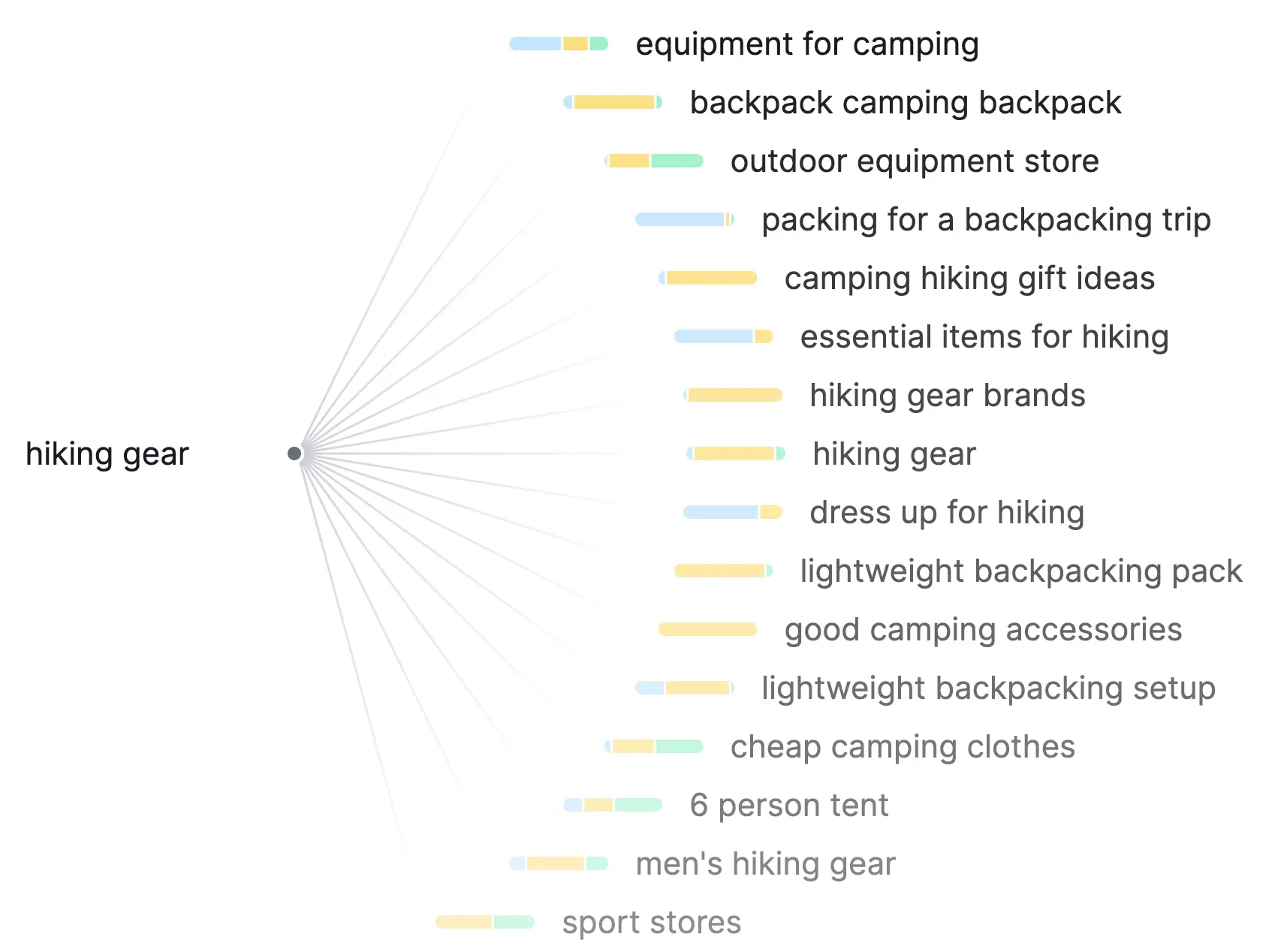 For example, if you want to build topical authority on "hiking gear", you can create content around these clusters: