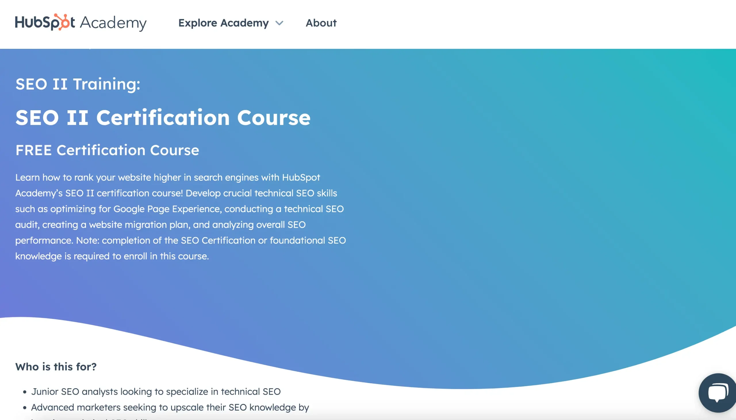 SEO Certification Course By HubSpot - A technical SEO-focused course ideal for those wanting to understand audits, migrations, and performance tracking. Takes just over 2 hours and is completely free.