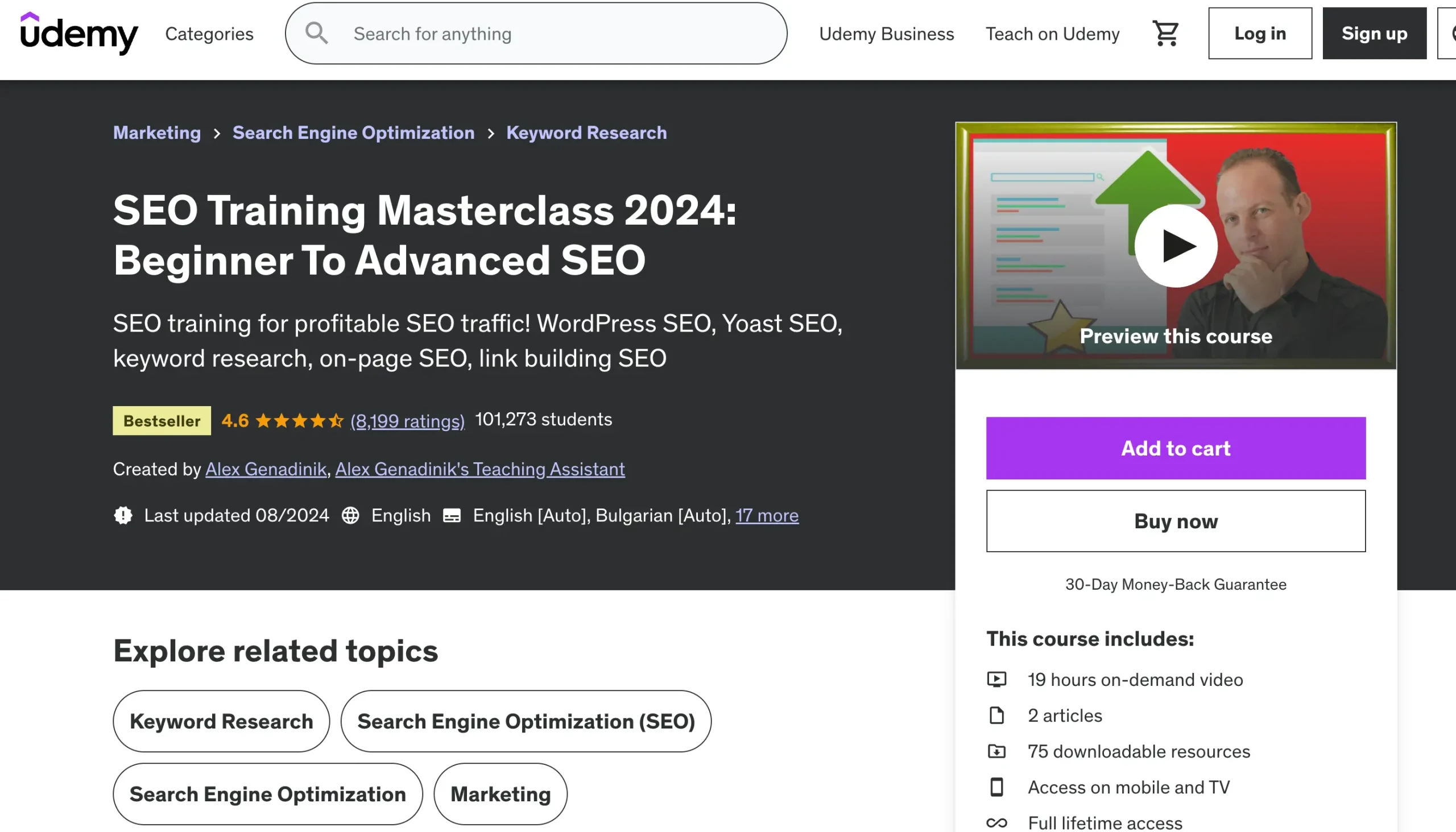 The SEO Training Masterclass: Beginner To Advanced SEO is one of their best-selling SEO courses on Udemy. Based on 8,199+ reviews, the course has a star rating of 4.6/5.