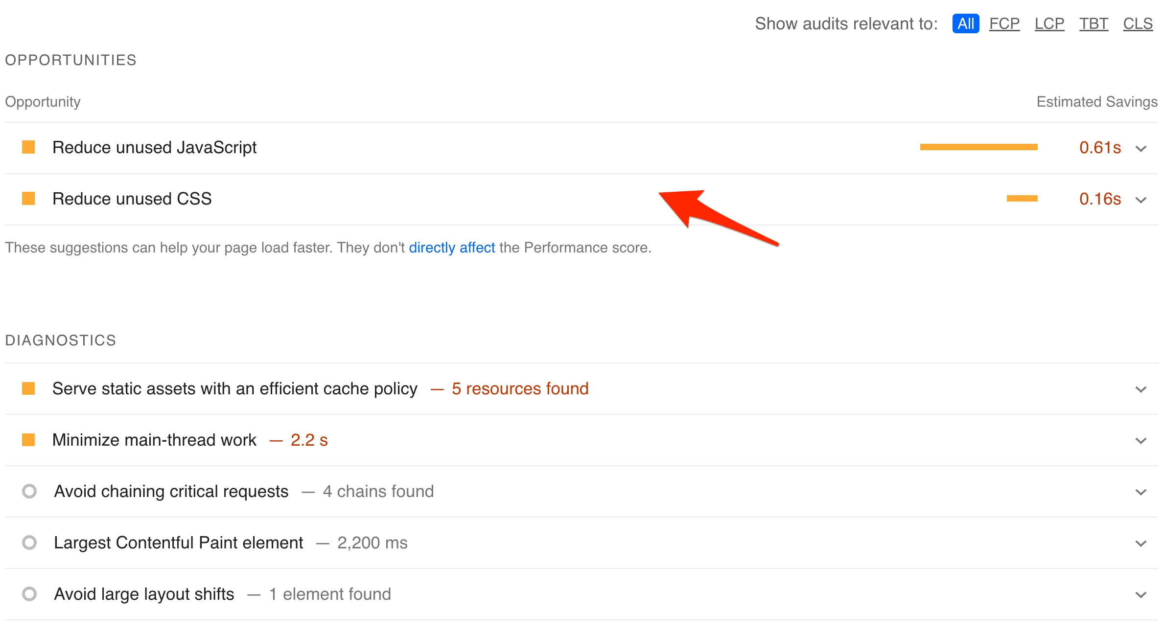 Scroll down to the "Diagnostics" part and get recommendations on how to improve your page speed.