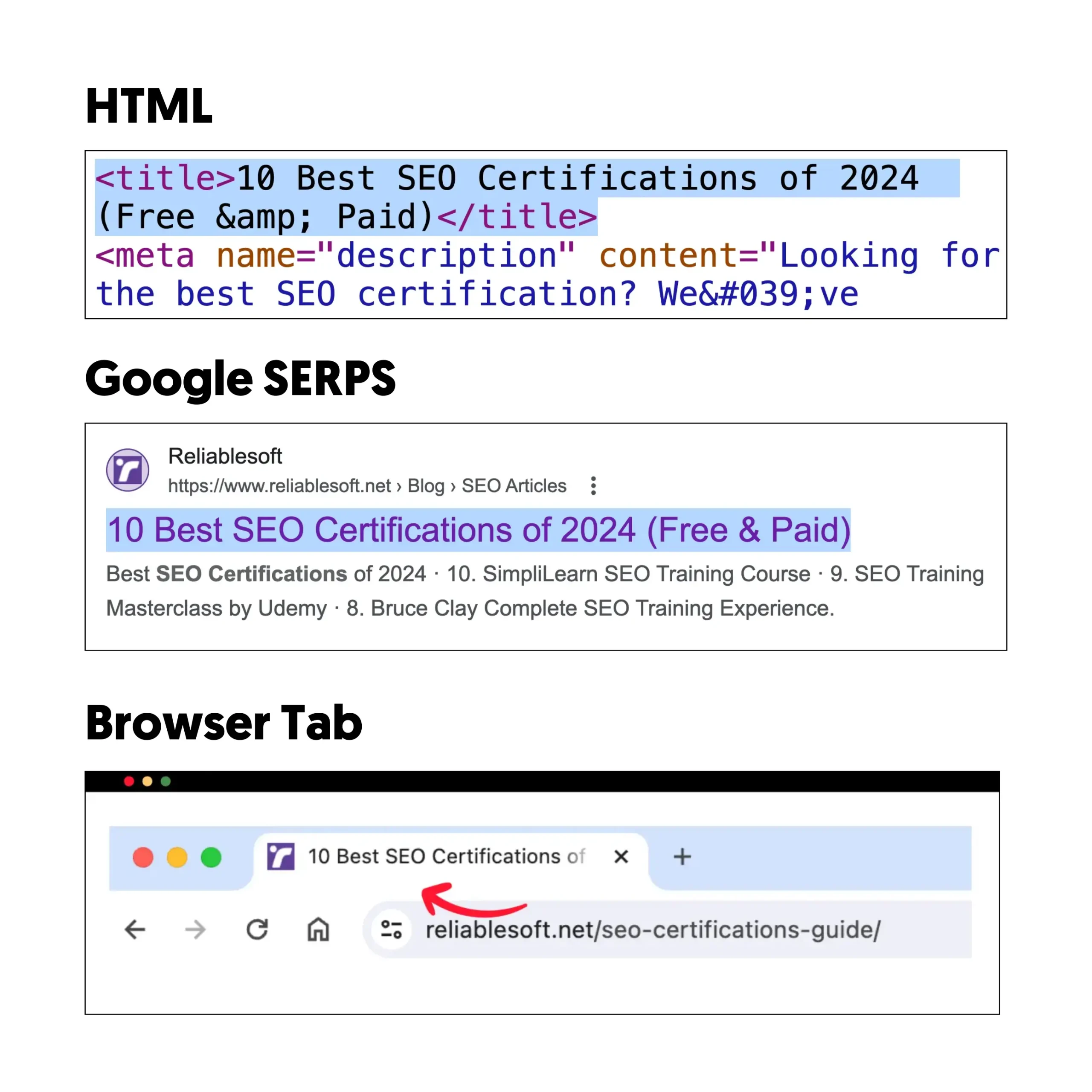 Here is another example. The post "10 Best SEO Certifications of 2024 (Free & Paid)" has the URL https://www.reliablesoft.net/seo-certifications-guide/, which includes the target keyword.