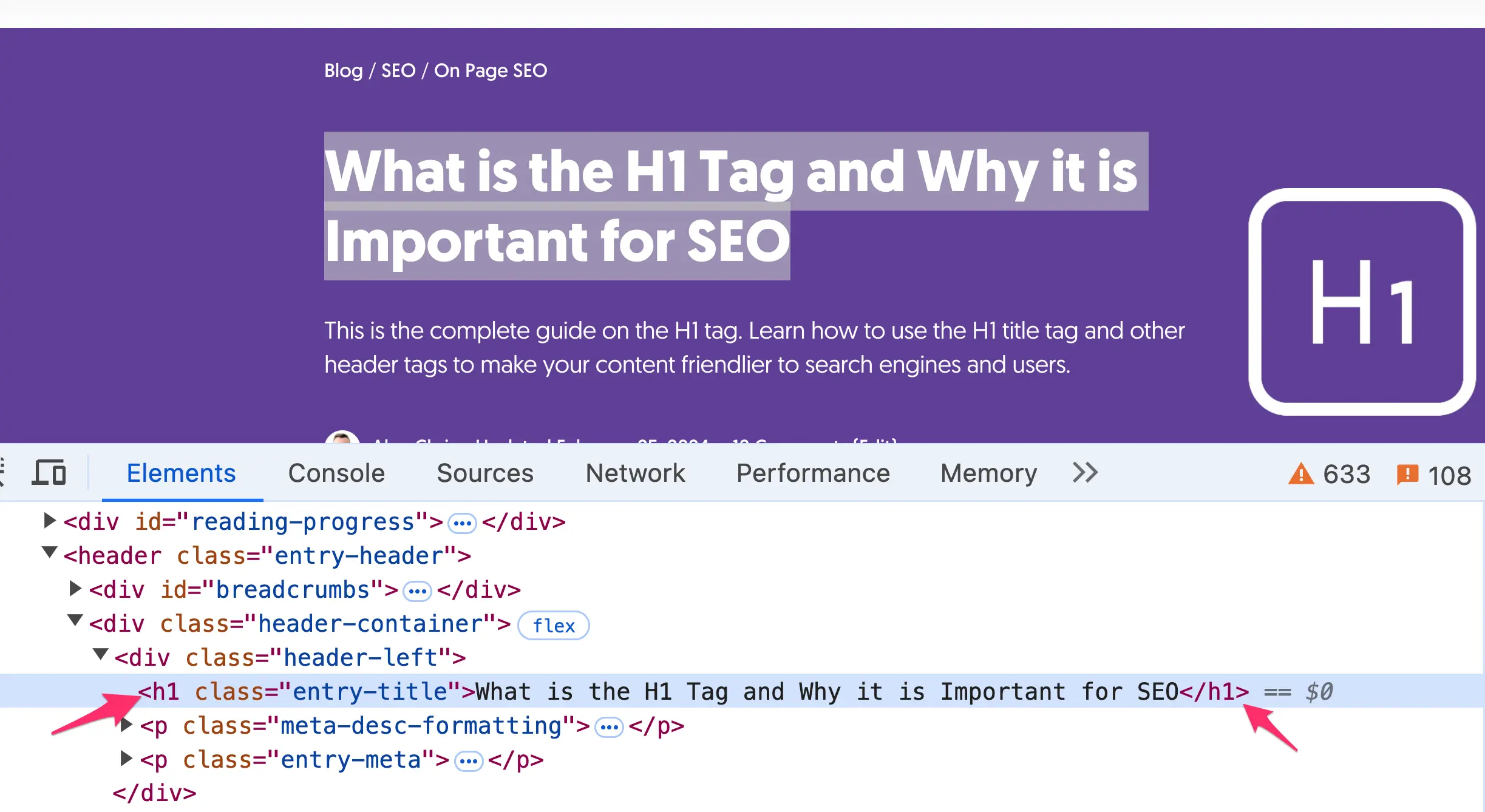 In most CMS, whatever you write as the title of a page or post is shown in the <title> tag in the HTML and also wrapped into an H1 tag.
