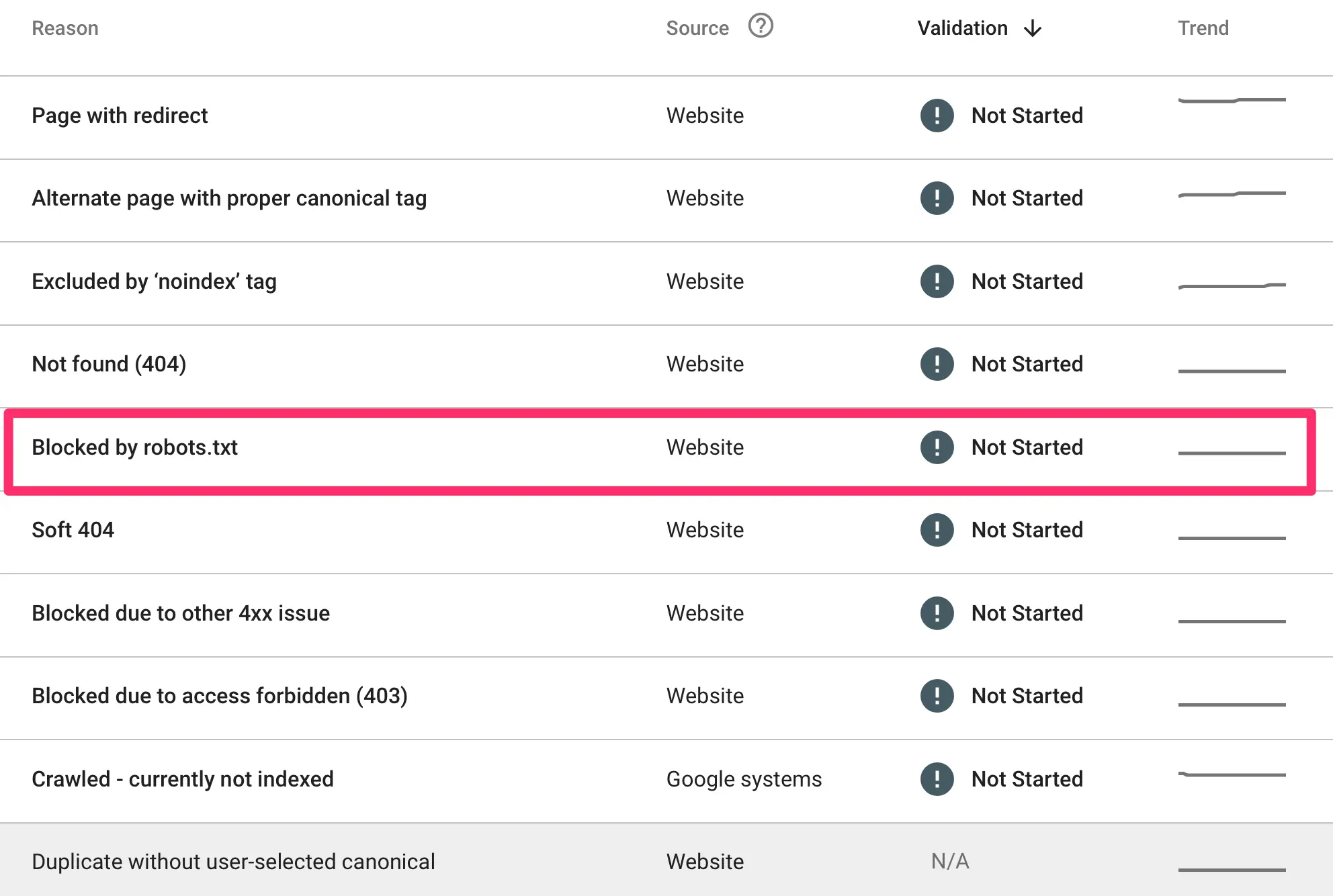 Login to GSC and click "Pages" under indexing to review the page indexing report. Your report should look like the screenshot below.