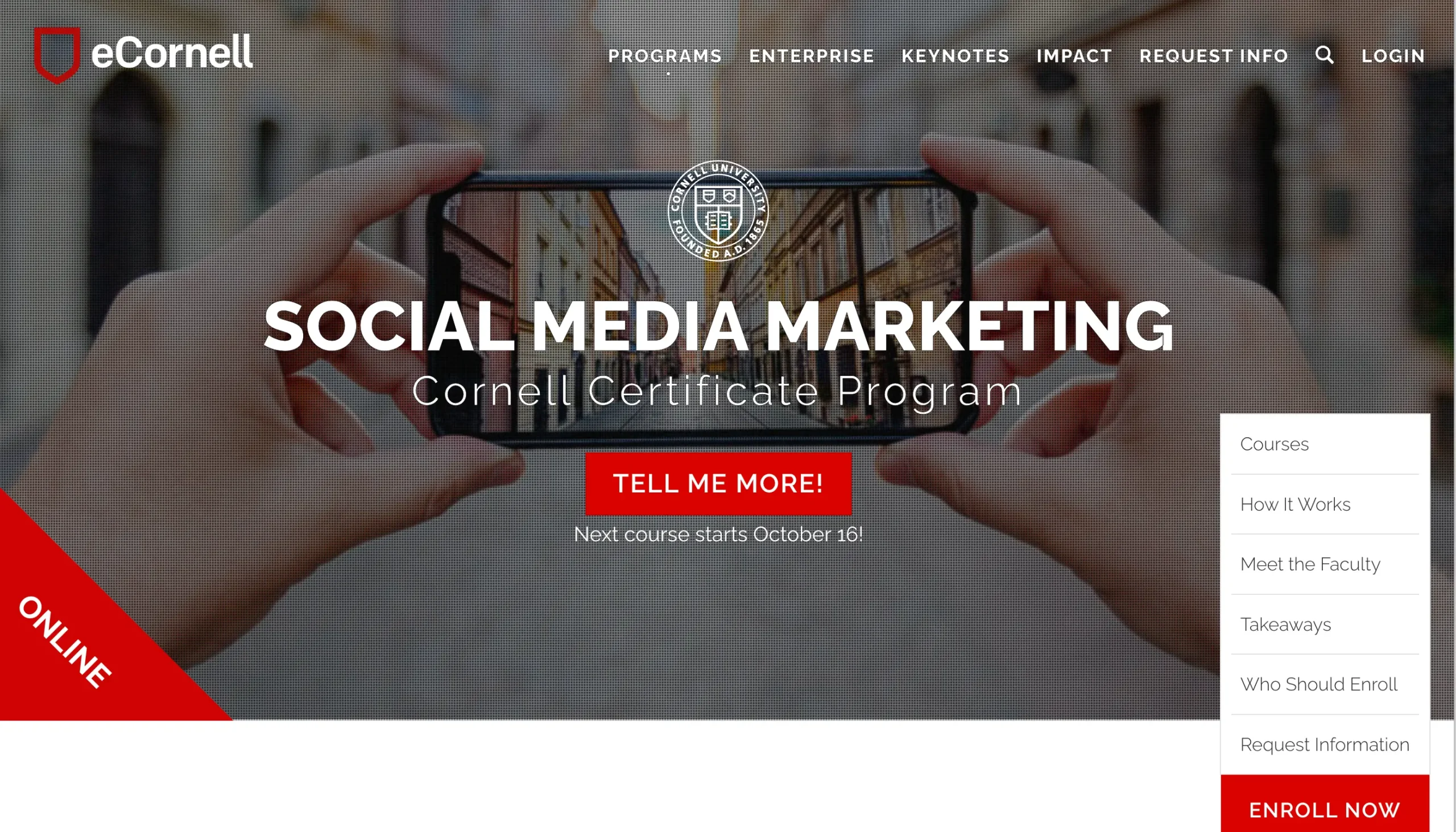 The Social Media Marketing Certificate program by eCornell will teach you how to develop a strategic approach to using various social media platforms.