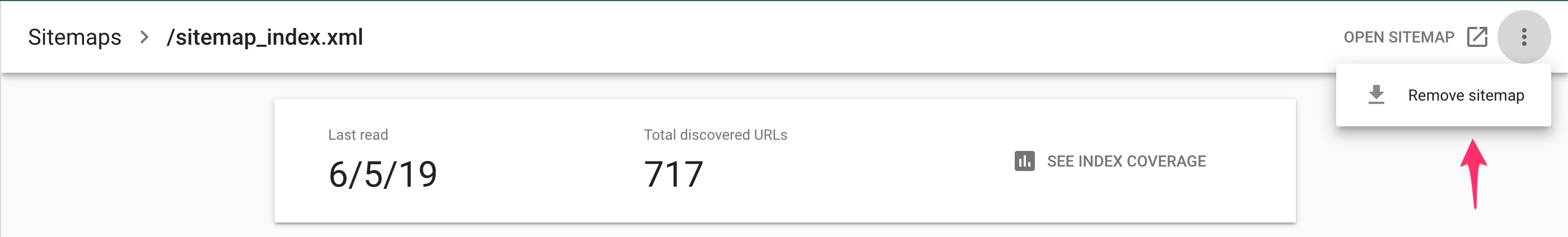 - Click the three dots (top right corner) and select REMOVE SITEMAP.