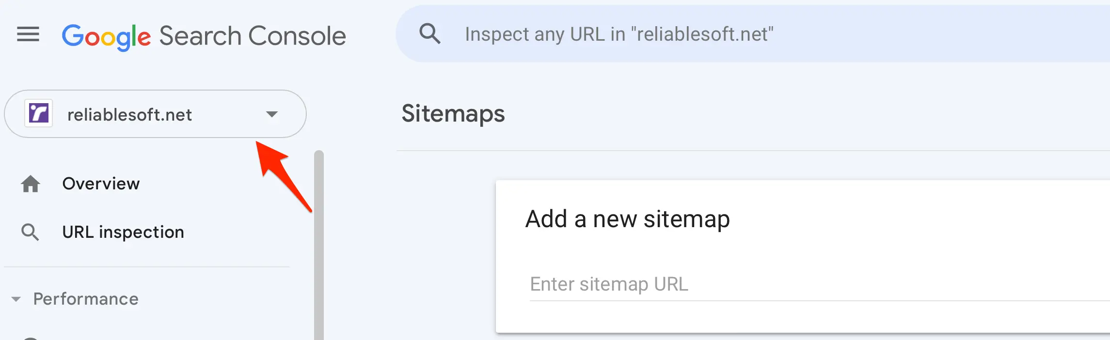 The first step is to create an account with Google Search Console. If you already have an account, log in and select your domain from the top left menu.