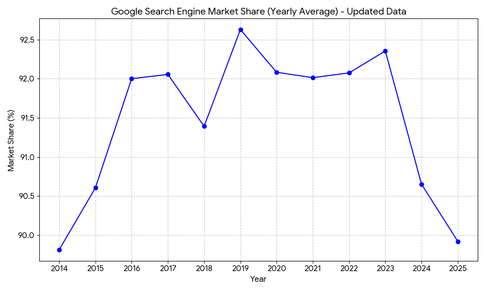 As you can see in the graph below, Google's market share has been consistently over 90% for the last decade.