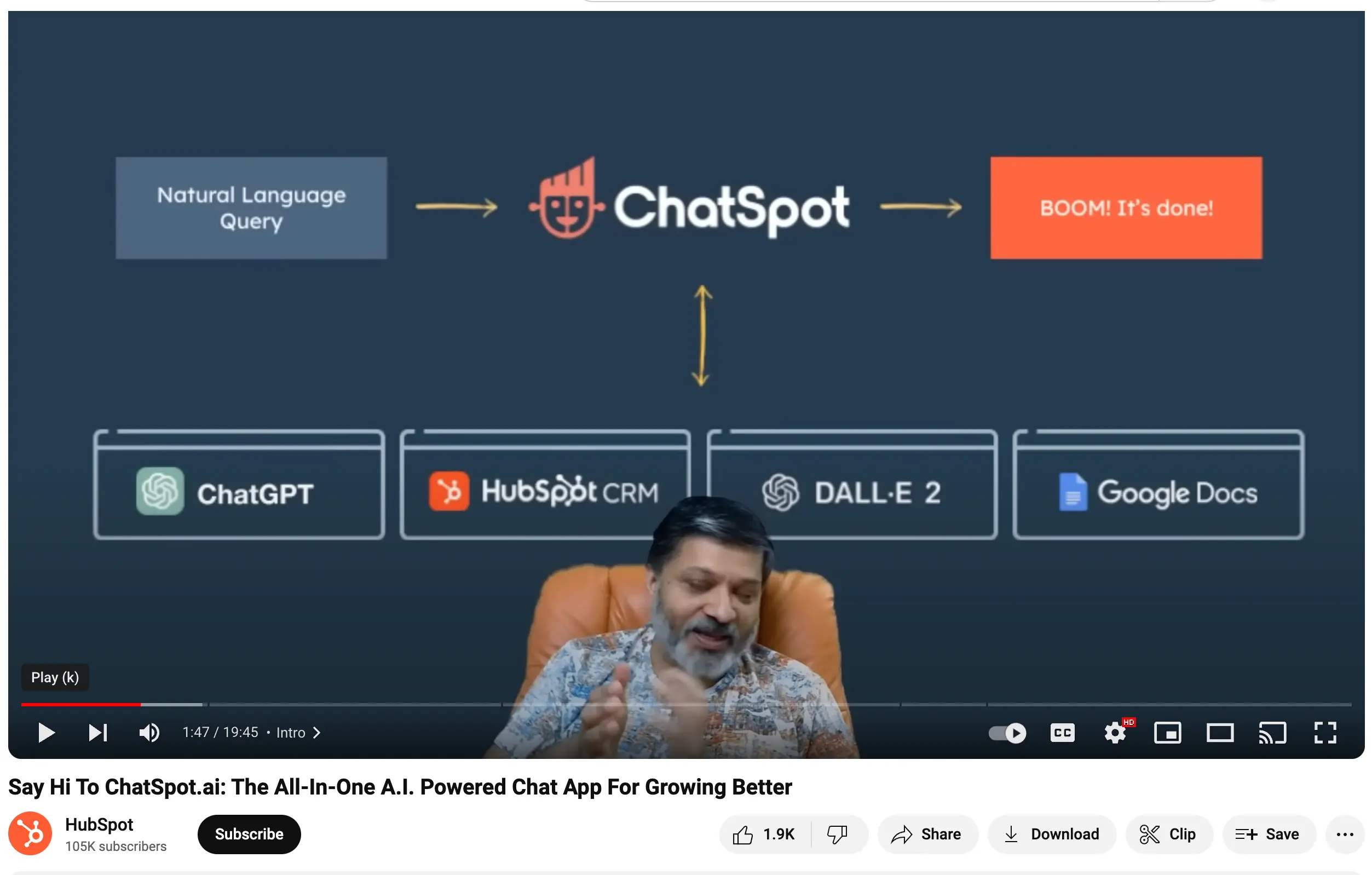 Some of the most successful videos from HubSpot are educational content. For example, the company’s video about “ChatSpot.Ai” teaches customers everything they need about HubSpot's latest conversational chat app. Within 7 months, the video had already earned almost a quarter of a million views on YouTube.