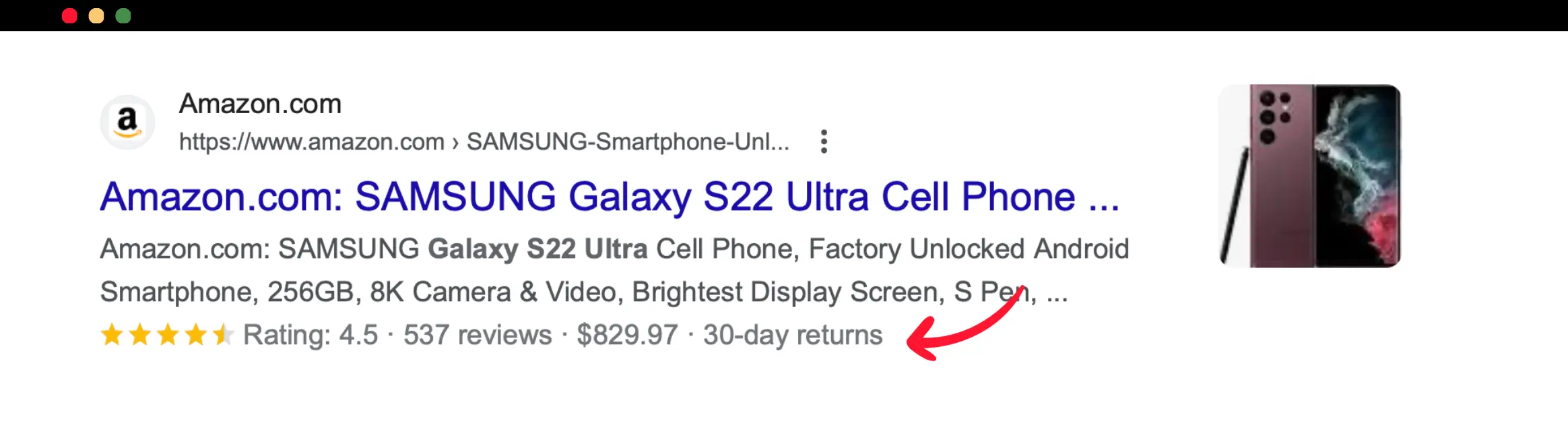 - Review Markup - This enables the display of star ratings and customer reviews directly in search results.