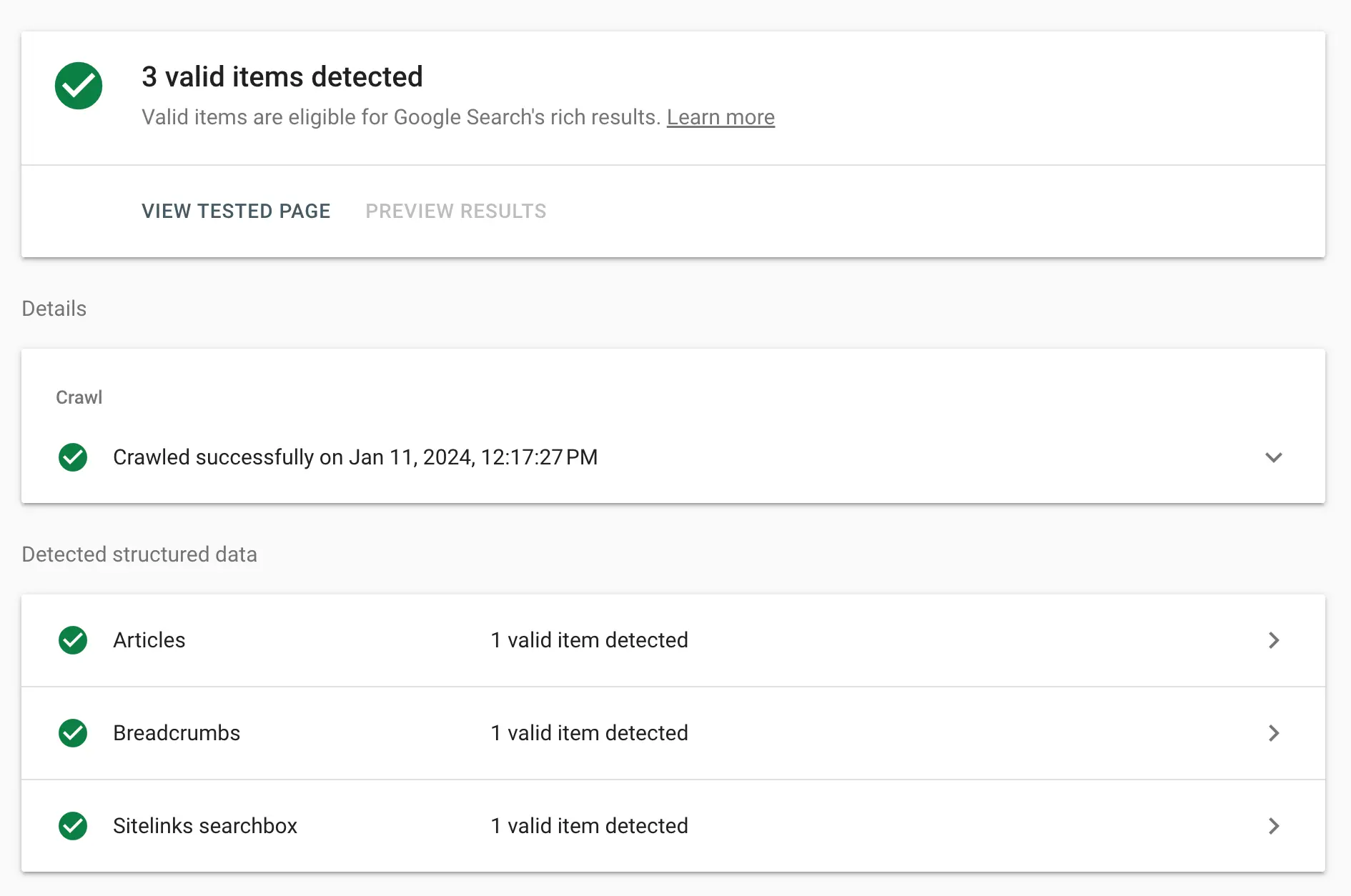 The final step is to take your changes live and test that Google can read your schema markup without problems. You can do this by visiting the rich results test tool and pasting the URL of your page.